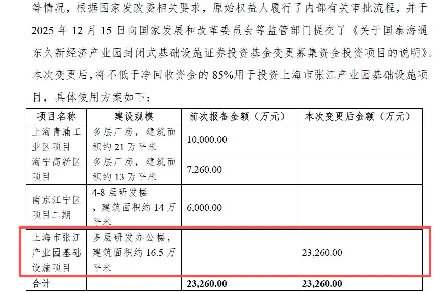 最终扩募规模为4.27亿,但两个项目总估值才3.59亿,超募了不少。而更有意思的是,还发公告改变了回收资金用途。这里又要划重点了,这张江的16.5w是什么项目?可不就是张江在线58产业园嘛。
