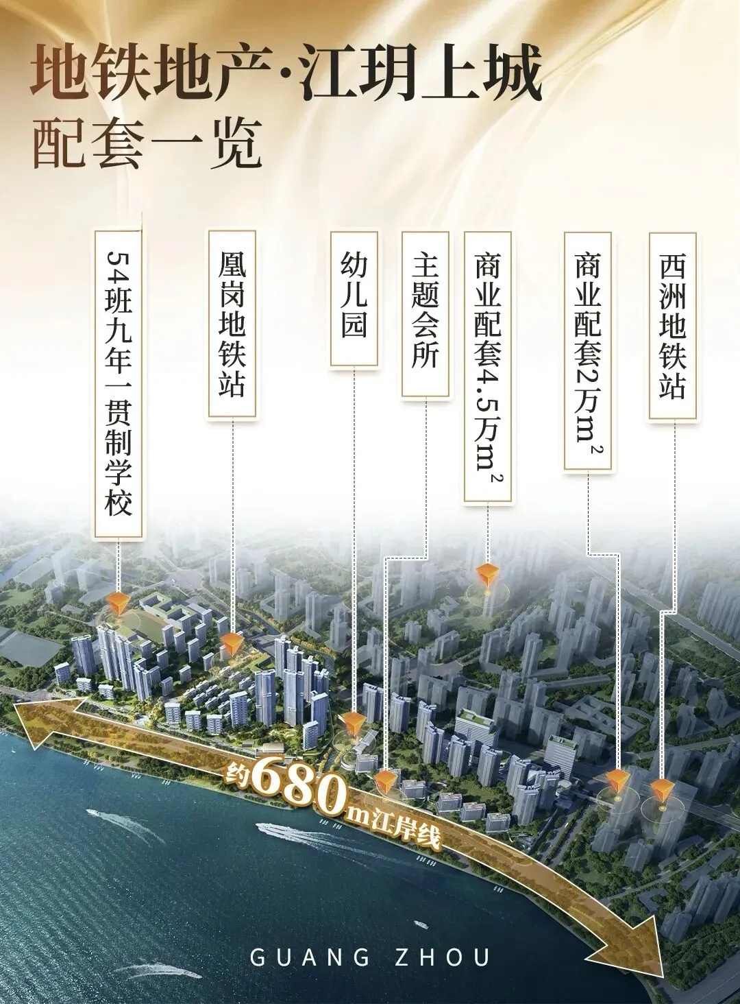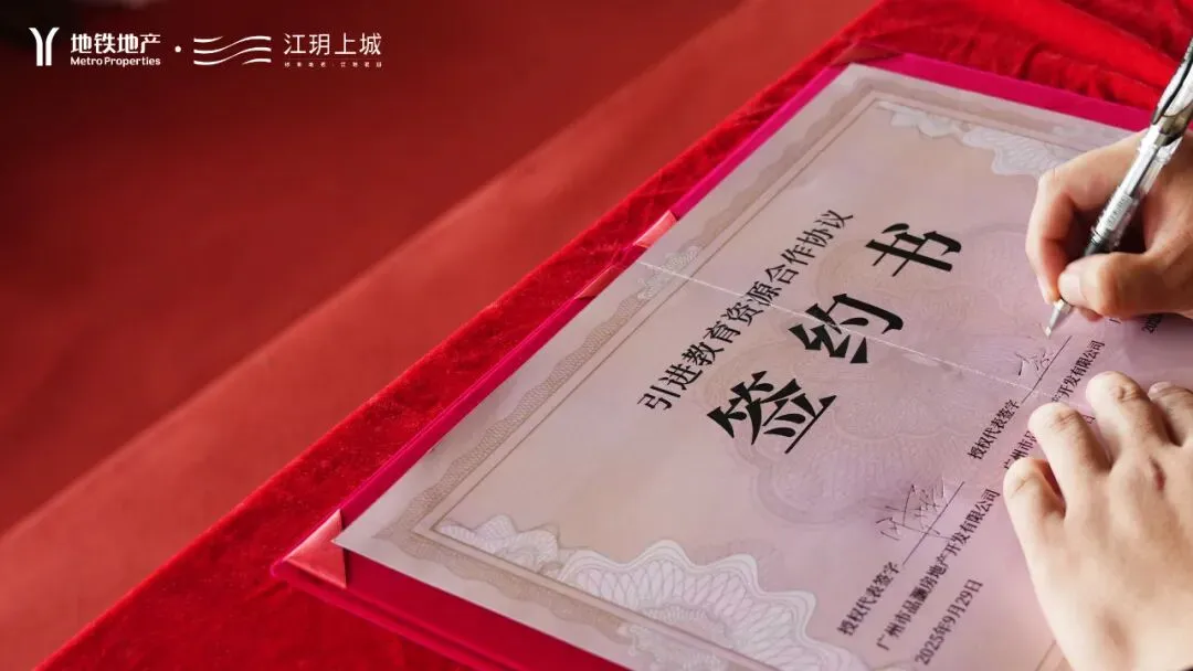 2025年9月29日,广州地铁地产于珠江之畔隆重举行教育资源签约仪式,正式发布湾区新岸全新作品案名——「江玥上城」,并与百年名校培英中学达成战略合作。
