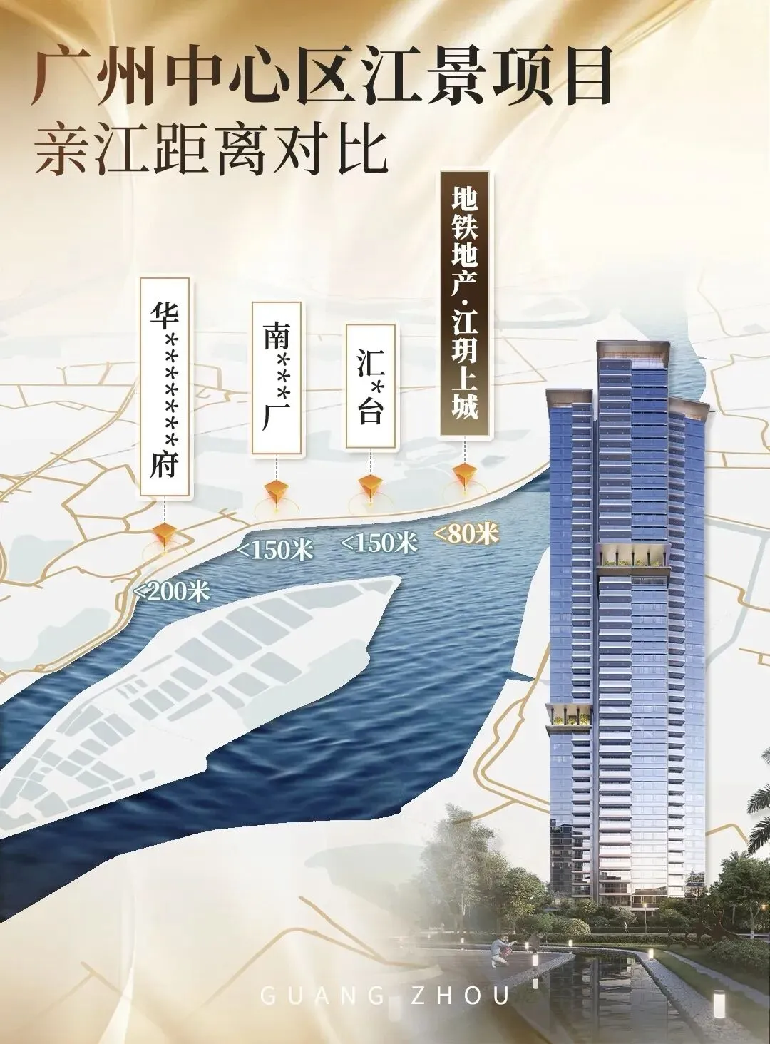 放眼广州中心区,豪宅距江大多在100-300米,而江玥上城“出场即超越”