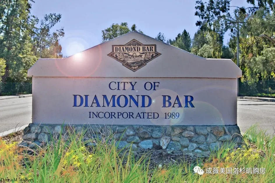 钻石吧由来:当美国政府接管加州的后,洛杉矶诺克斯被分成好多块,然后卖出去做牧场,其中最大的一个就是钻石吧牧场。钻石吧的第一栋房子是在1960 年建成的,就是靠近后来建成的波莫纳高速公路。直到20 世纪60 年代泛美公司一直管理真个社区的发展。泛美公司在20 世纪70 年代到80 年代期间解体, 钻石吧这个项目被卖给多个开发商,直到20 世纪80 年代对钻石吧的建设只完成了原定计划的一半,于 1989 年钻石吧正式注册成立了这座城市。