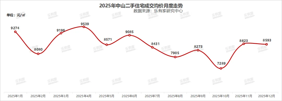 另一方面,2025年中山二手住宅成交均价,走势与成交量不太一样。