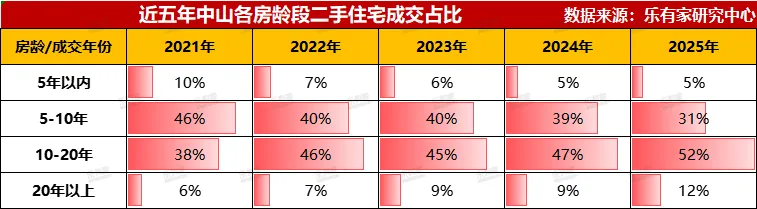 房龄10-20年房源成交占比达52%,相较2024年提升5个百分点;