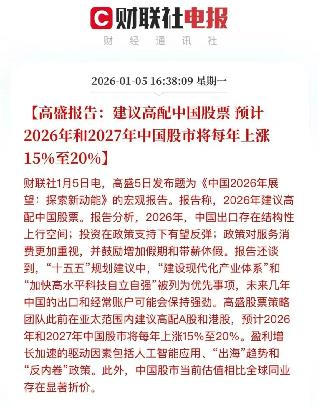 今天下午,财联社一篇关于高盛对中国股市的预测疯传,高盛建议高配中国股票,预测未来两年涨幅分别为15-20%。猪哥也对中国经济持有非常乐观的态度,相信股市能走出长牛,年底写过一篇《