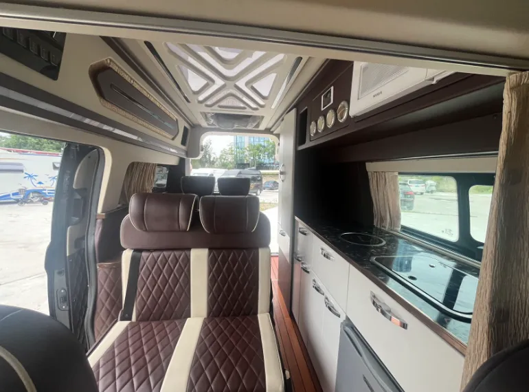 【上装配件】网络电视,微波炉,电磁炉,热水器,新风系统,柴油暖风,户外遮阳篷,车顶超大双人床,后双排座椅可变卡座,卡座可拼床,后置卫浴,便携式马桶,折叠水盆,冷热水龙头,淋浴花洒,