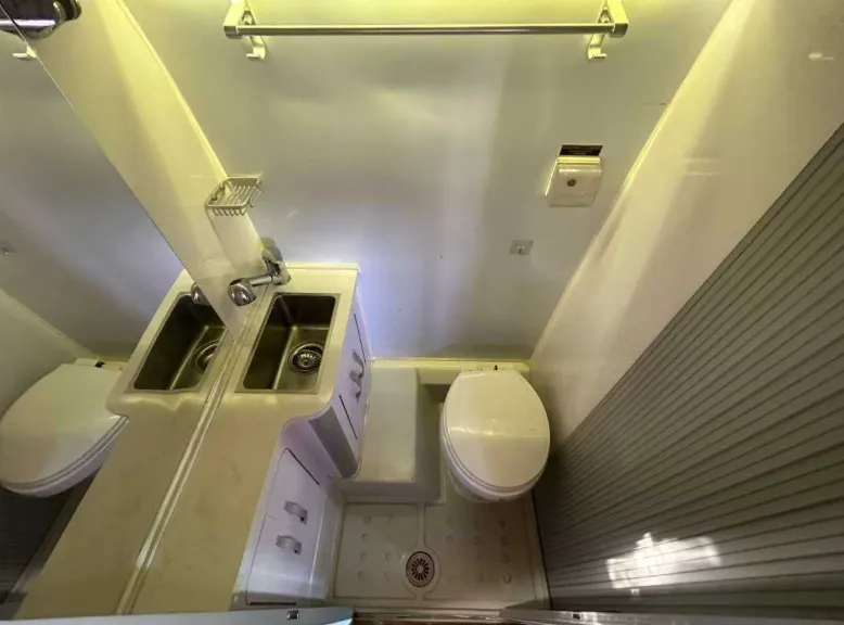 【上装配件】电视一个,音响,宏都顶置空调,燃油取暖加热器等、70升冰箱,微波炉、粉碎性马桶、双向换气扇、天窗,化妆镜、热水系统等、3.5米遮阳篷,预留户外厨房等
