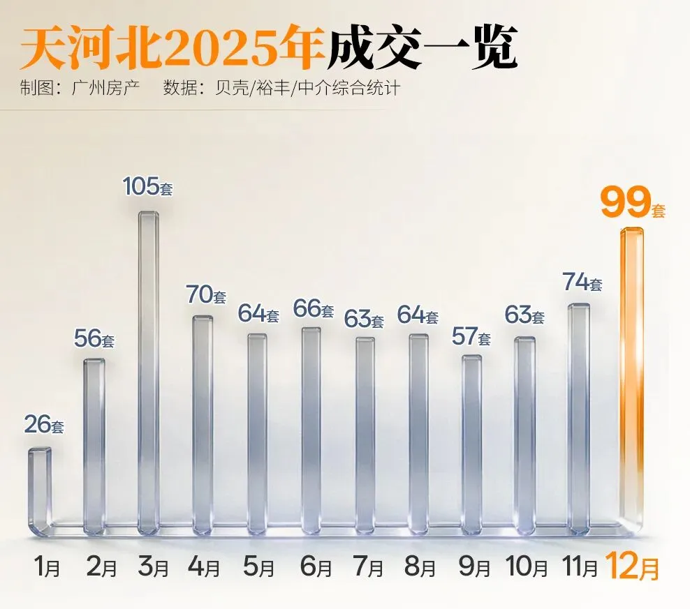 这几乎是今年以来,天河北成交最火热的一个月(仅次于3月的105套)!比去年同期(75套)暴涨32%。