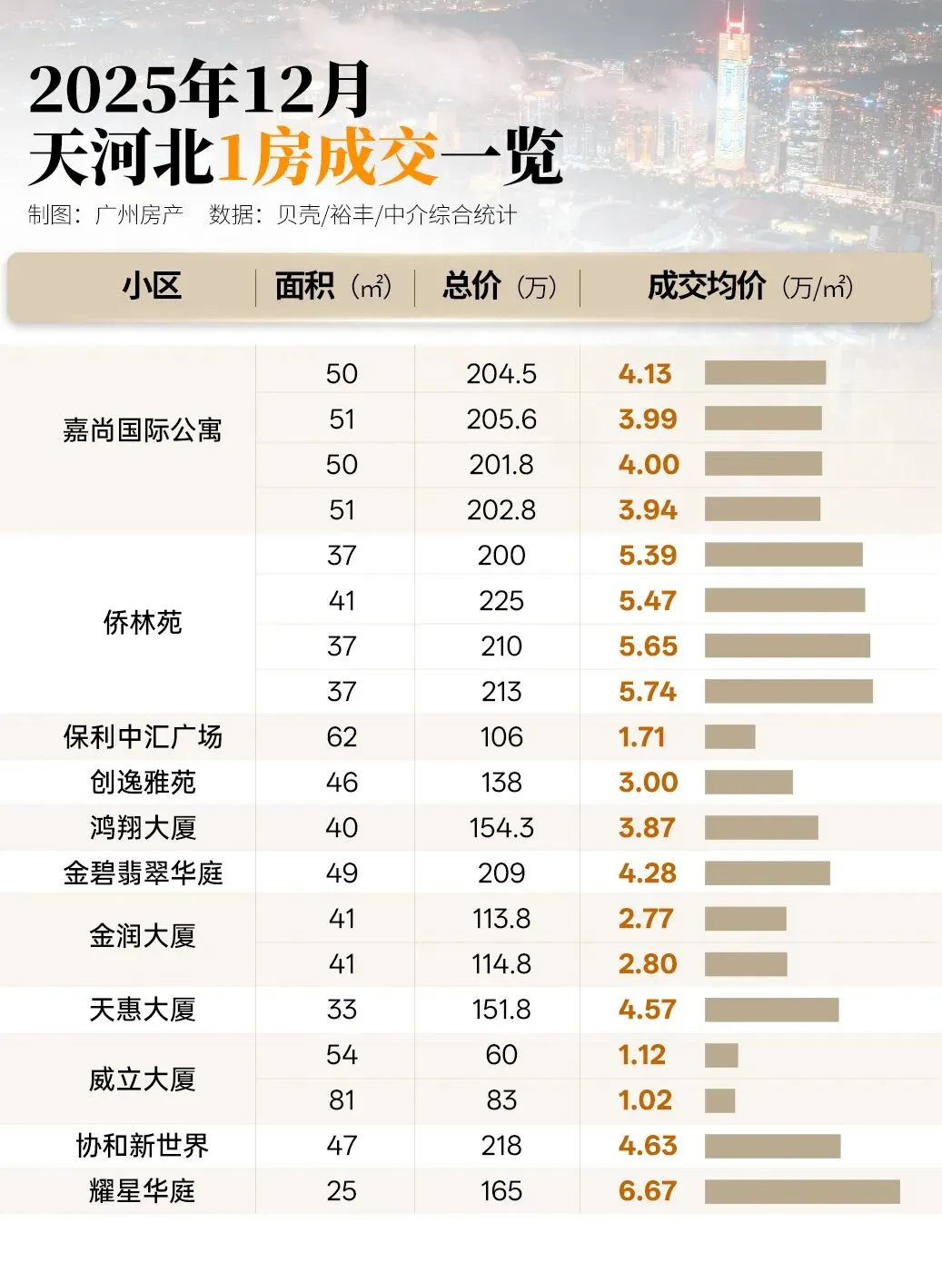 我发现,12月天河北单间1房成交了20套,其中对口华阳的侨林苑、嘉尚、耀星华庭有9套,价格都在200万+。