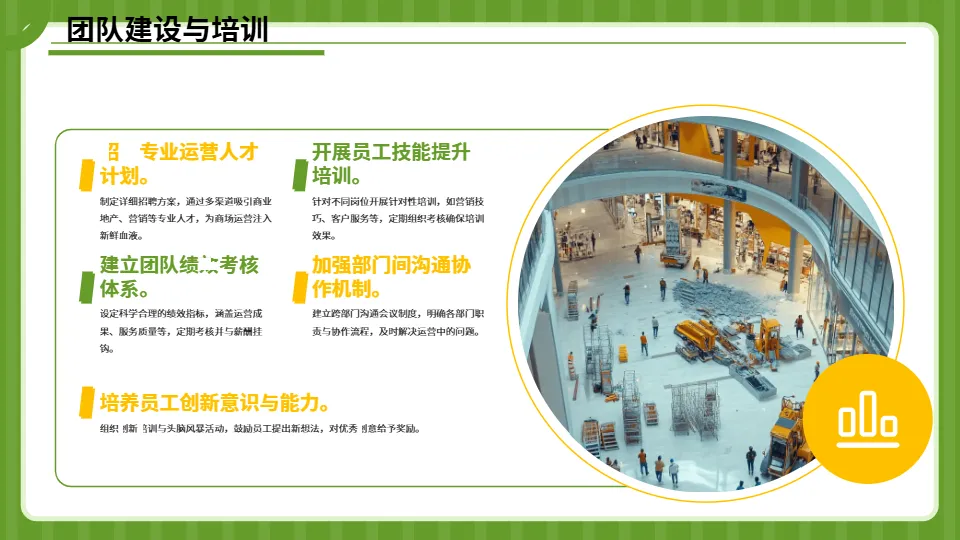 制定针对性的团队培训计划,重点开展数字化工具操作、新兴业态分析、精细化运营管理等专项培训,提升团队专业能力;进一步优化服务标准化流程,推行“一对一”商户服务专员制度,提升商户服务效率;增设便民服务设施,如母婴室升级、免费充电区扩容等,全方位提升顾客购物体验。(五)筑牢安全运营防线