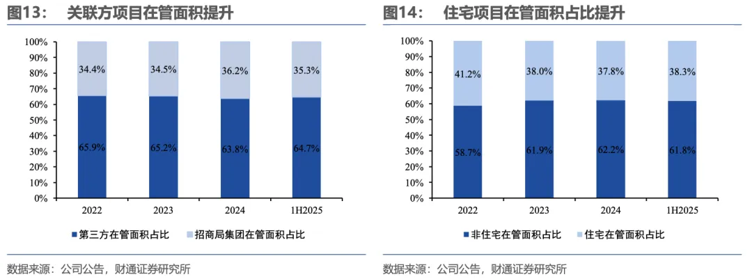 截止至2025年上半年,公司在管项目72个,其中受托管理招商蛇口的项目为60个,自持项目3个,第三方品牌输出项目9个;合计在管面积为397万方。