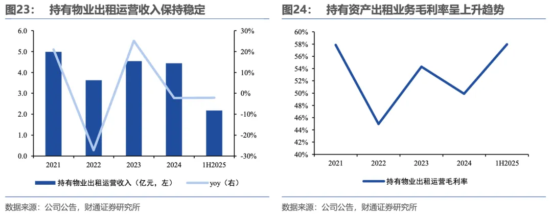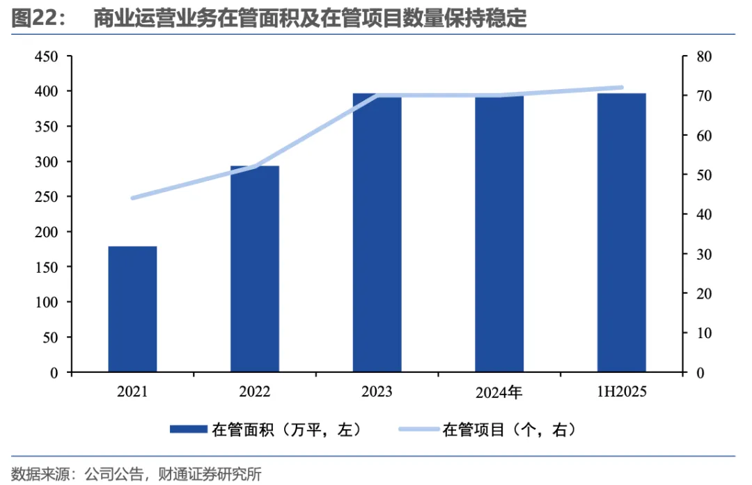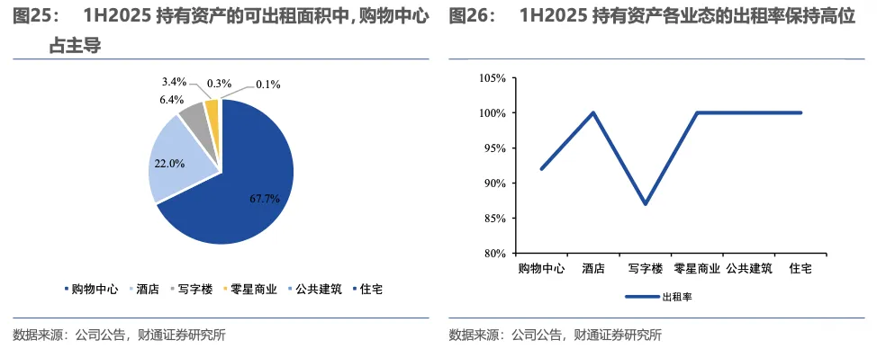 资产管理业务由“商业运营业务”和“持有资产出租业务”构成,其中“商业运营业务”的收入占比逐年提升,已由2020年的5.1%提升至2025年上半年的30.1%。