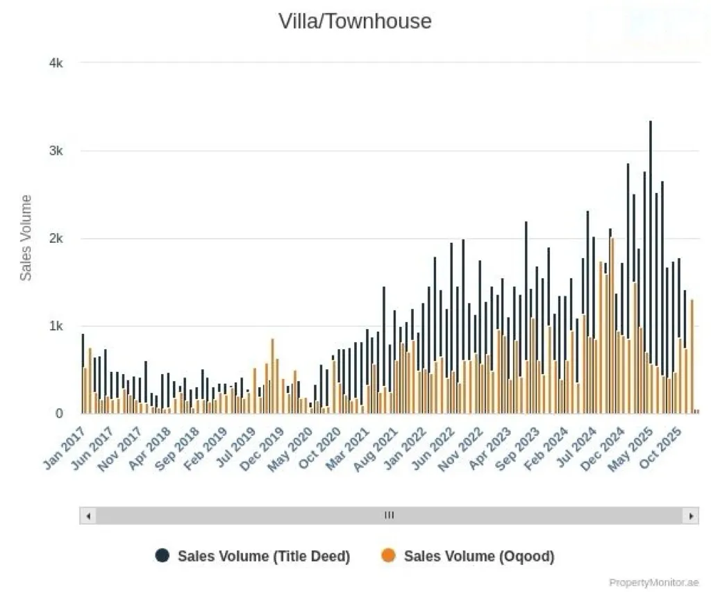 ▲ 2025年12月迪拜别墅二手与期房销售量对比