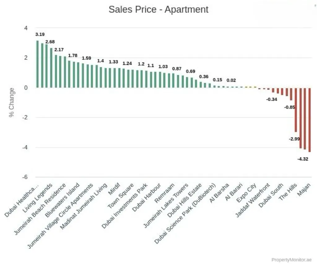 ▲ 2025年12月迪拜各区域【公寓】租赁价格环比变化