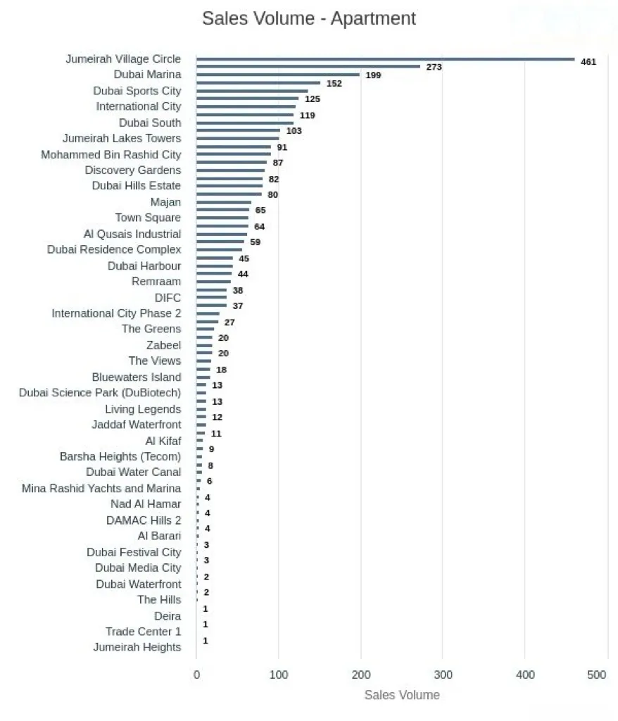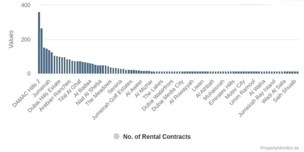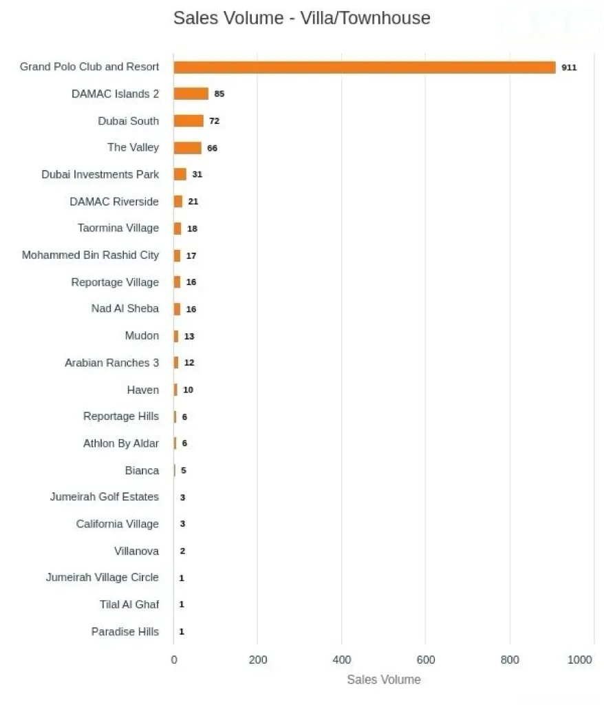 ▲ 2025年12月迪拜各区域【二手别墅】交易数量