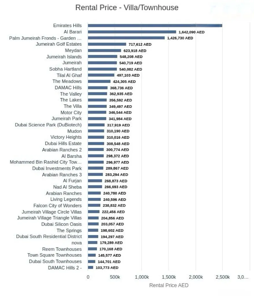▲ 2025年12月迪拜各区域【别墅】房产租赁价格(迪拉姆)