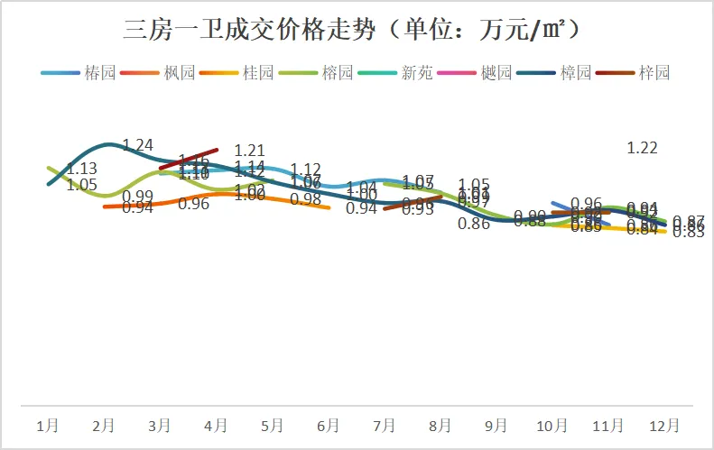 ②三房一卫整体挂牌232套,占比36%,去化周期29个月,其中去化压力主要集中在:樟园挂牌86套,去化周期长达30个月;桂园挂牌47套-去化达30个月,榕园挂牌49套-去化周期28个月,椿园挂牌33套-去化周期28个月;考虑出手的业主及时关注市场;