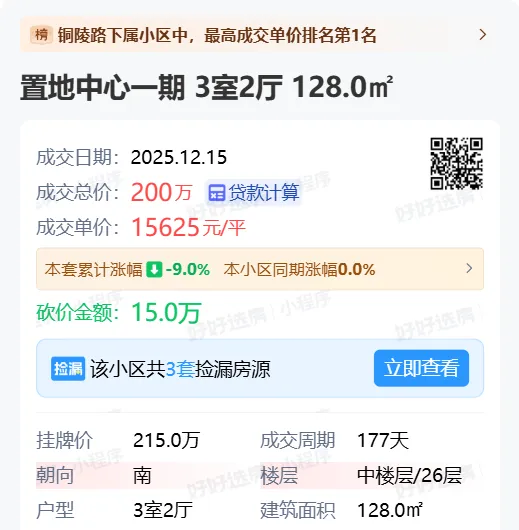 新的龙头小区置地中心,虽然品质在线,但价格却没能扛住,最新成交的一套,