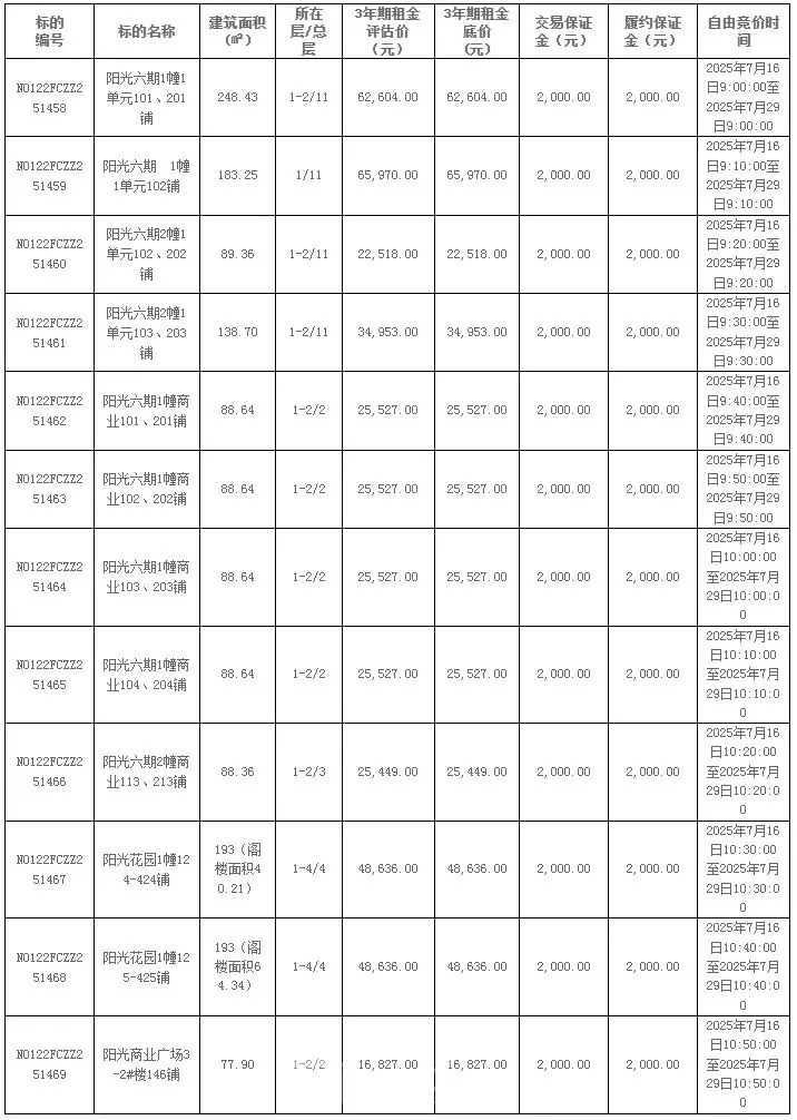 租赁价格:3年期租金底价16,827-65,970元起,如有竞价,价高者得(具体可看下面价格明细表),装修宽限期为1个月,计入租赁期限,免收租金;