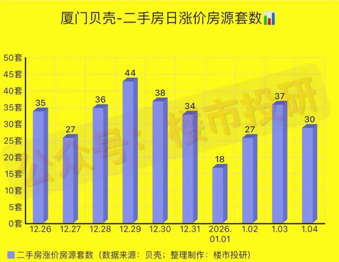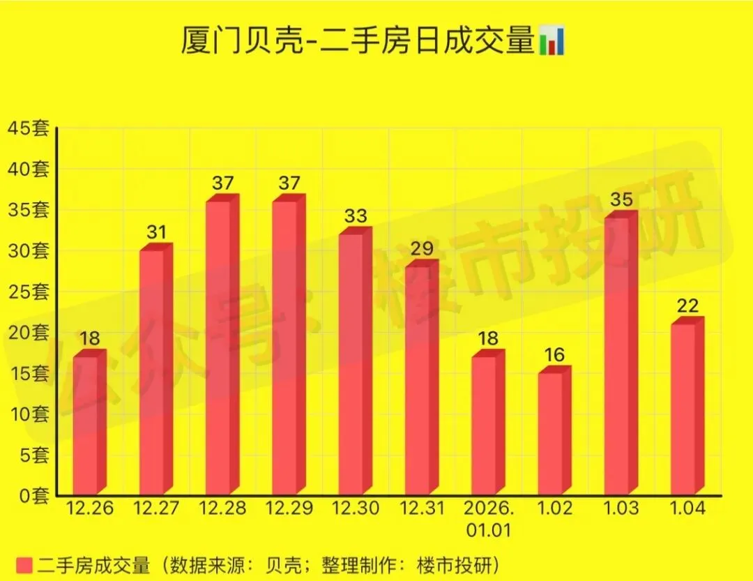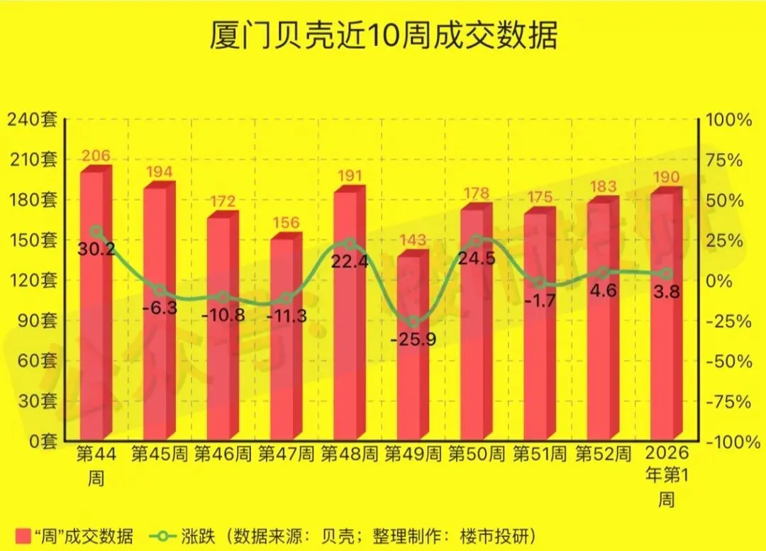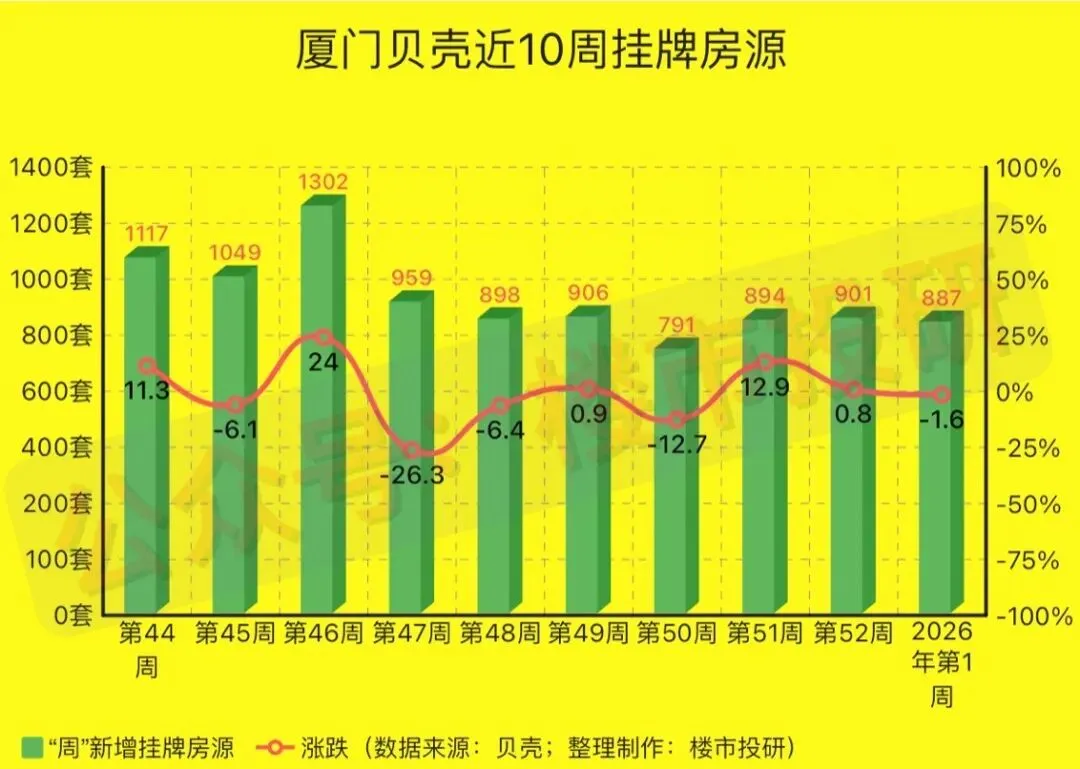2026年第1周(2025年12月29日-2026年1月04日),厦门贝壳平台二手房相关数据一览: