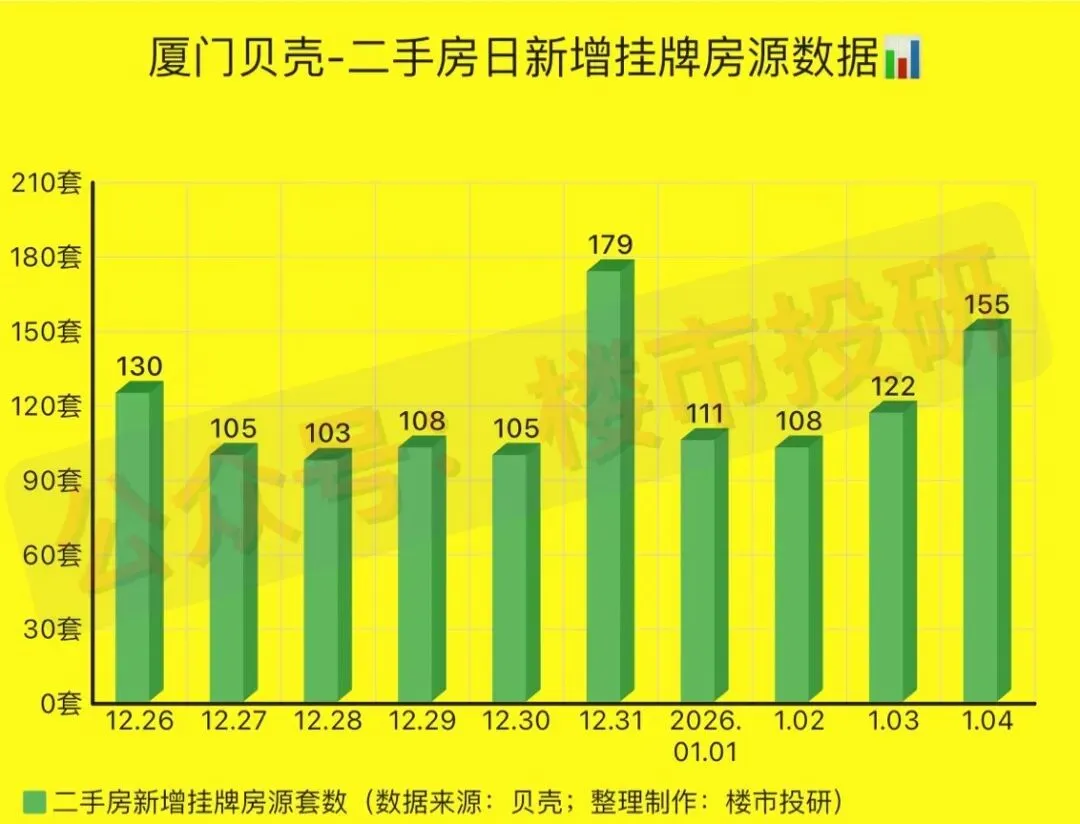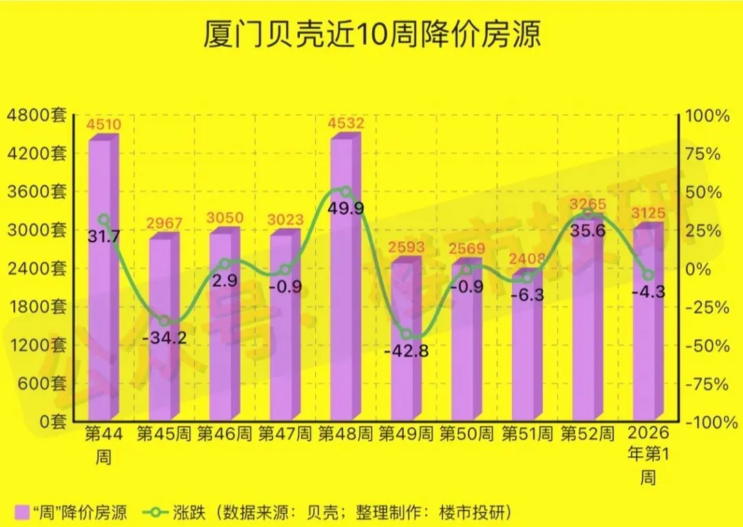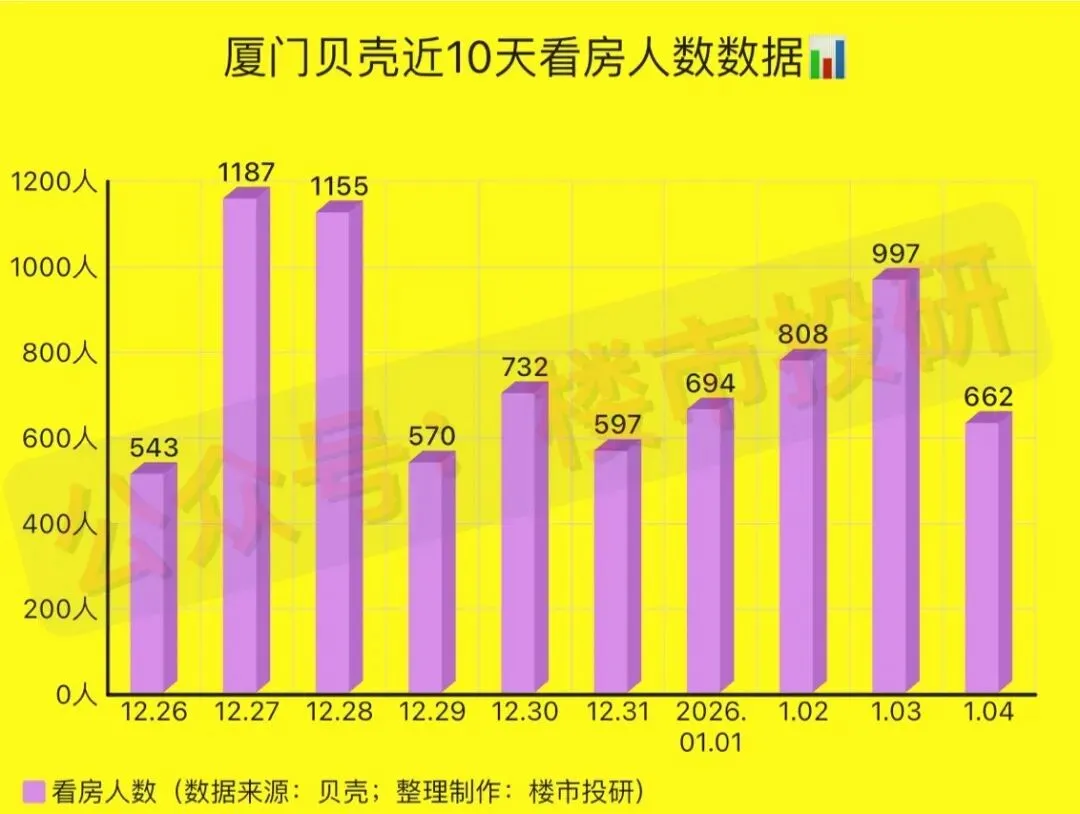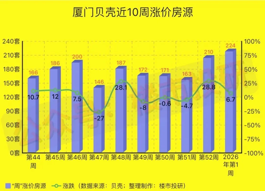 2026年第1周(2025年12月29日-2026年1月04日),厦门贝壳平台二手房相关数据一览: