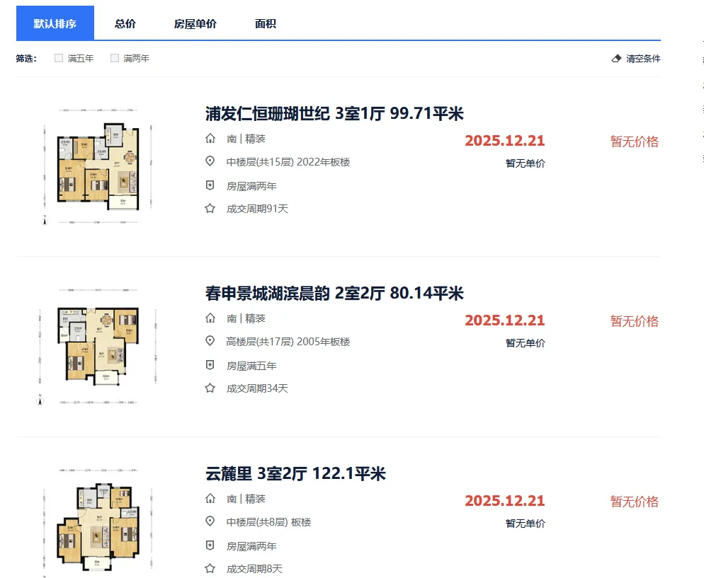 △上海贝壳找房当前二手房成交价记录情况,截自2026年1月6日