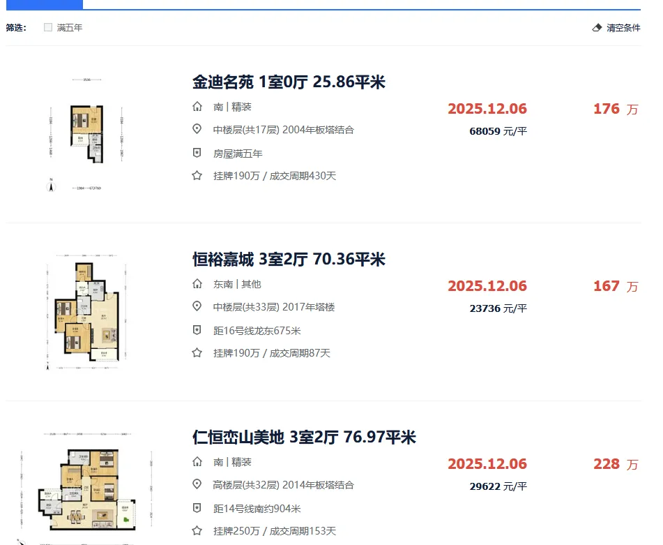 △贝壳找房最新二手房成交记录,截自2026年1月6日