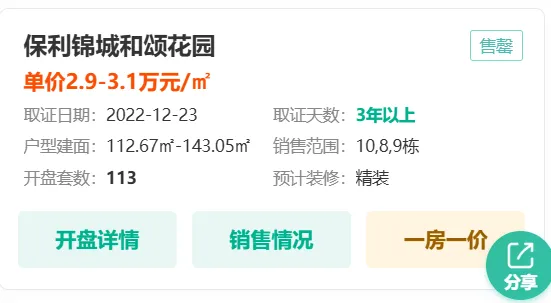 成都保利锦城和颂首批次2022年12月底取证有优惠,2023年03月初二批次较首批次同户型房源总价上浮约¥25-40万/套;建面约129㎡户型比上批次贵约25万/套,建面约143㎡户型比上批次贵约40万/套。