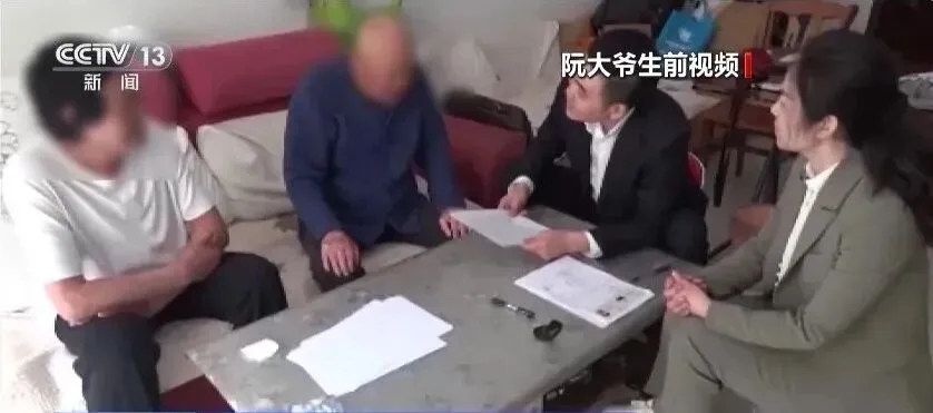 视频镜头前,93岁的阮大爷思路清晰,言语坚定。因为不会写字,他重重地按下了红手印。