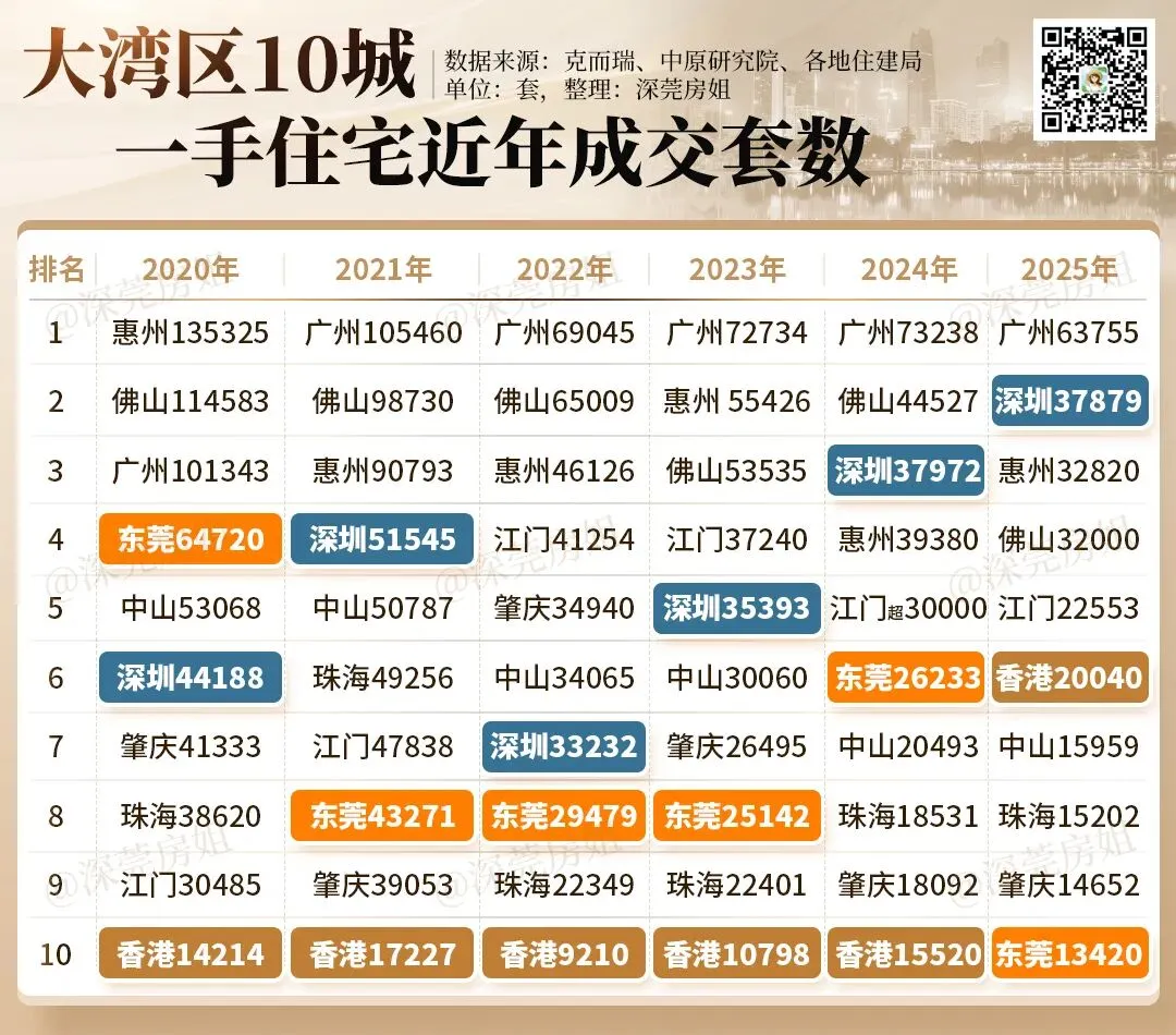 2025年东莞新房成交只有13063套,在大湾区排名倒数第一,东莞新房二手房呈现的冰火两重天的现象。