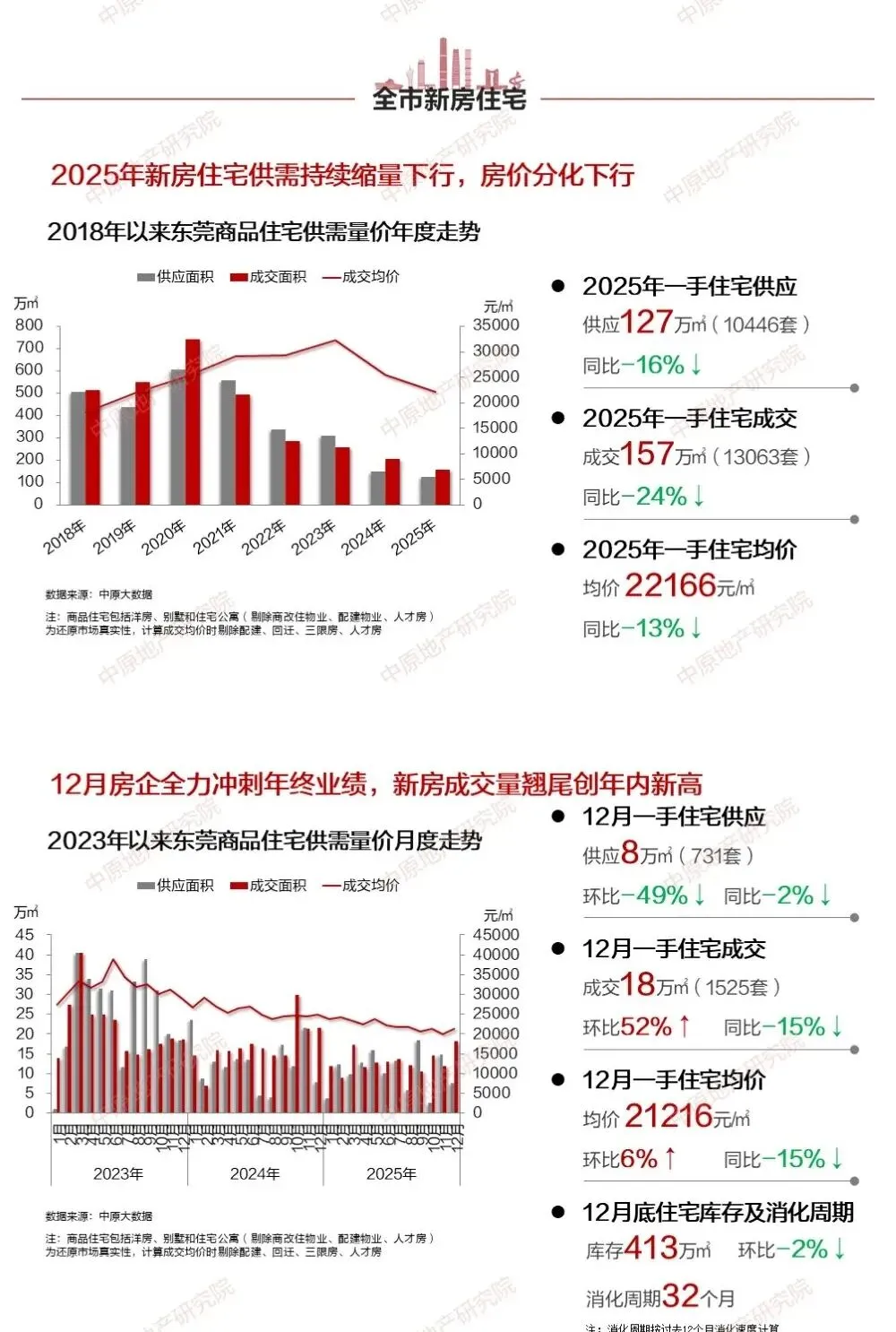 值得注意的是,在东莞市政府近期推出购房补贴、优化首套认定、提高公积金贷款额度及简化交易流程等一系列支持政策的推动下,市场活力得到了一定激发。随着年底房企冲刺年度目标,12月推盘与促销力度同步加强,推动当月新房成交量环比上升52%,创下年内新高。