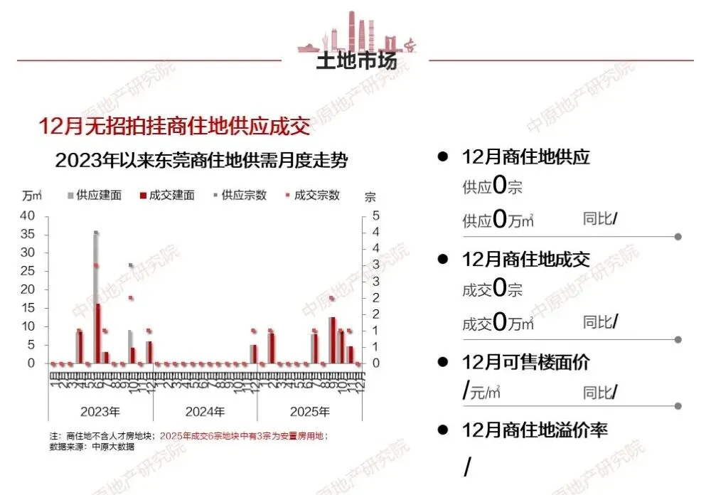 市场的整体情绪也传导至源头。2025年全年,东莞商住用地仅成交6宗,虽然同比前一年有所增加,但整体规模依然处于低位。开发商拿地态度普遍审慎,这既是对当前销售节奏的反映,也预示着未来新房上市的规模将趋于平缓。