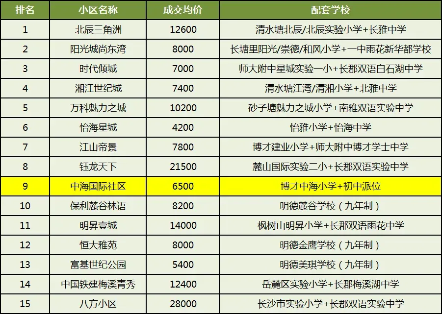 据象盒找房数据,2025年长沙二手房成交小区榜前15名里,除中海国际社区外,其余均是配套“小学+初中”双书包。
