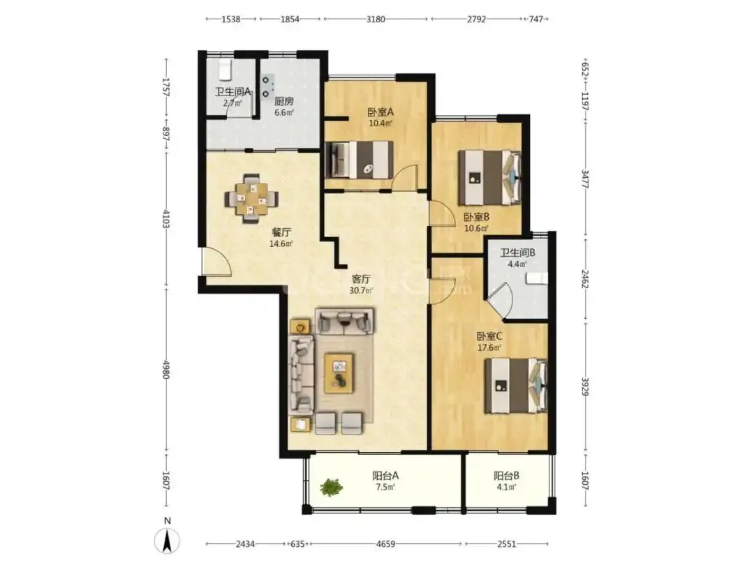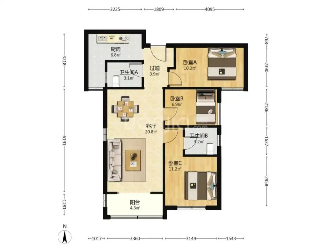 该套房源位于中国铁建梅溪青秀二期,建面约94㎡,3房2厅,售价96万,单价1万/㎡。