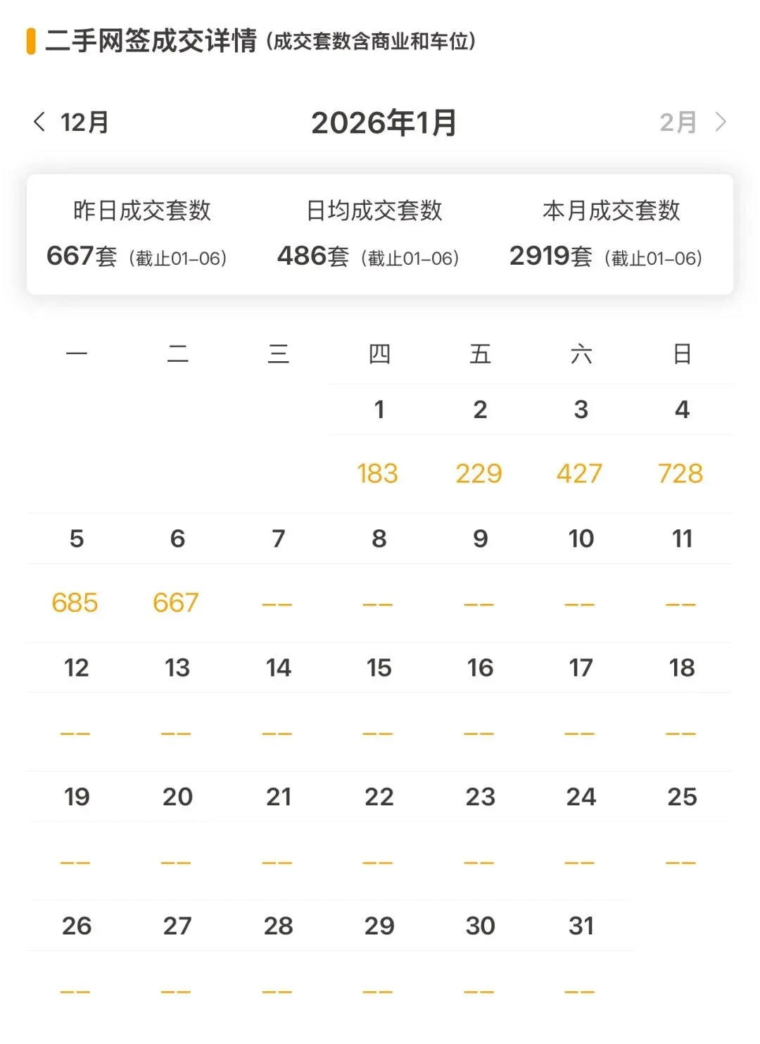 上海二手房最新成交量:昨日(1月6日)网签667套(含住宅、商业、车位等)。