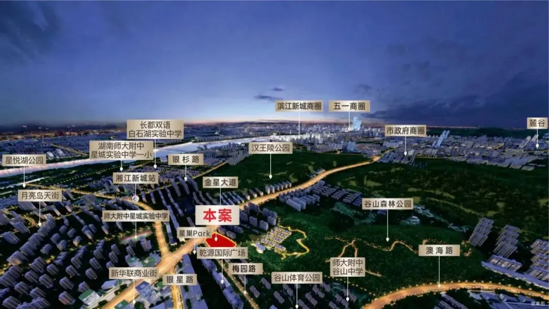 除了开发商品牌实力雄厚以外,这个项目的位置也很好。项目处在市府北金星路的核心位置,向南可快速连接市府、滨江;向北可直达大泽湖;向西则可以连接高铁西与麓谷,妥妥的十字中轴核心之上。