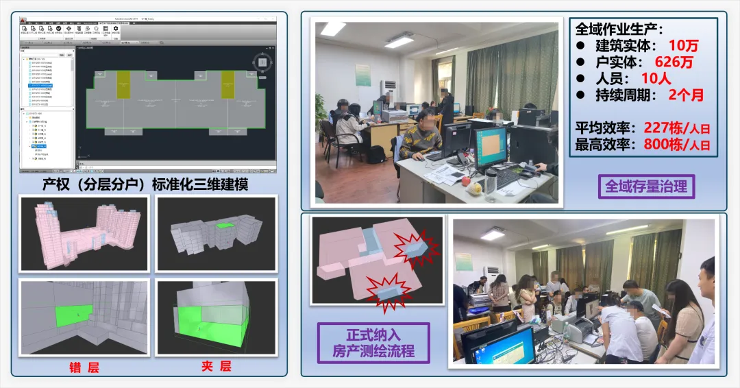 那么这里提到的建筑三维产权实体该如何高效地获取呢?南京市住房保障和房产局在房屋统一楼盘表项目建设过程中,采用Holo Architecture建筑产权三维建模平台,结合BIM技术,快速完成南京全域30万幢建筑三维模型的生产任务。同时,该建模流程已经正式纳入房产测绘流程,一方面完成产权BIM数据的采集和入库,发布为二维楼盘表支撑应用;另一方面通过三维产权模型直观地核验相关数据。