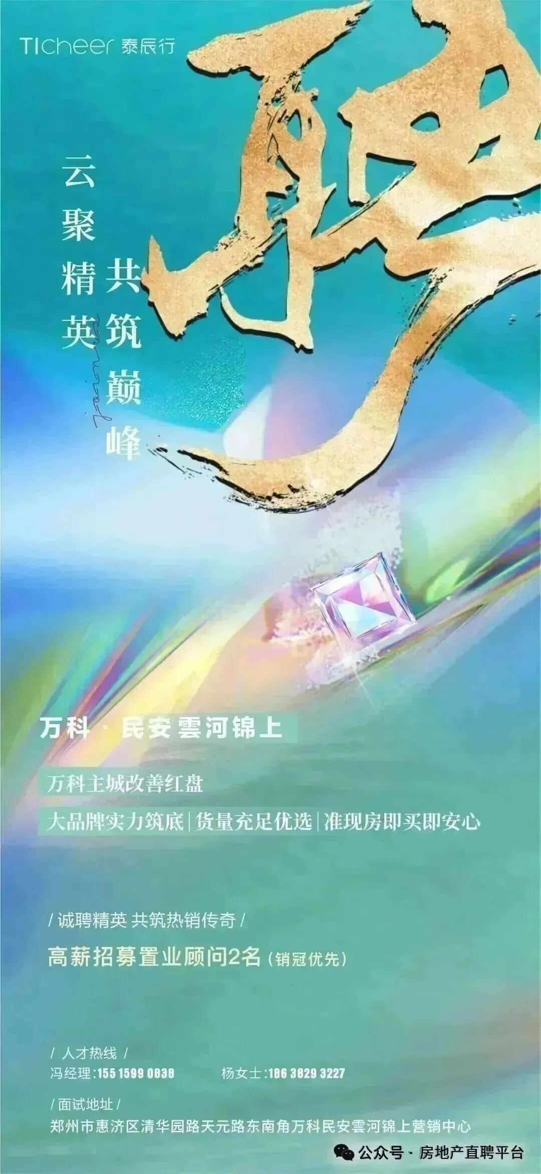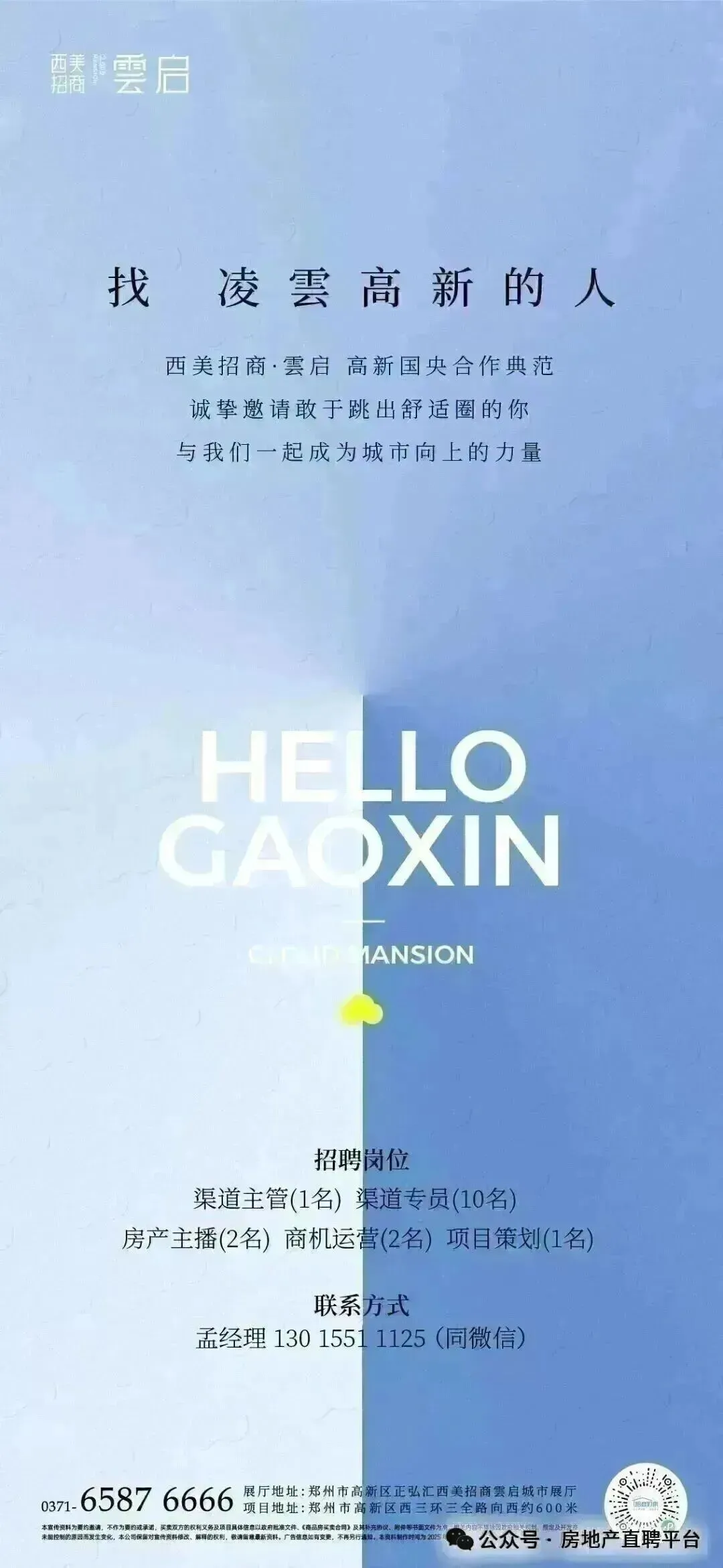 【1.7-地产招聘】西美招商雲启/绿都•脉栋/高新华曦府/水投常绿•壹號院/金投•申泰中原印象/万科•民安雲河锦上/鹤舞华亭/腾威城