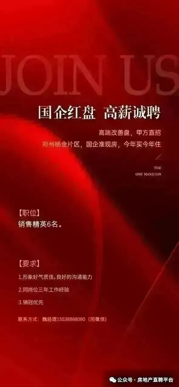 地产直聘,覆盖河南省18地市,拥有50000+地产人的信息圈,2000+地产交流社群,400+各行业Hr 信息对接;每周持续更新,河南省房地产及相关行业招聘信息;专注资源整合,信息共享。私信小编(文章最下方),即可预约发布招聘信息。