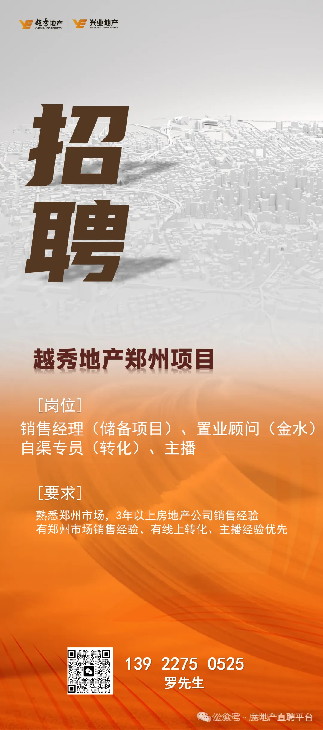 3年以上房地产公司郑州项目销售经验,主播、有线上商机销售工作经验优先