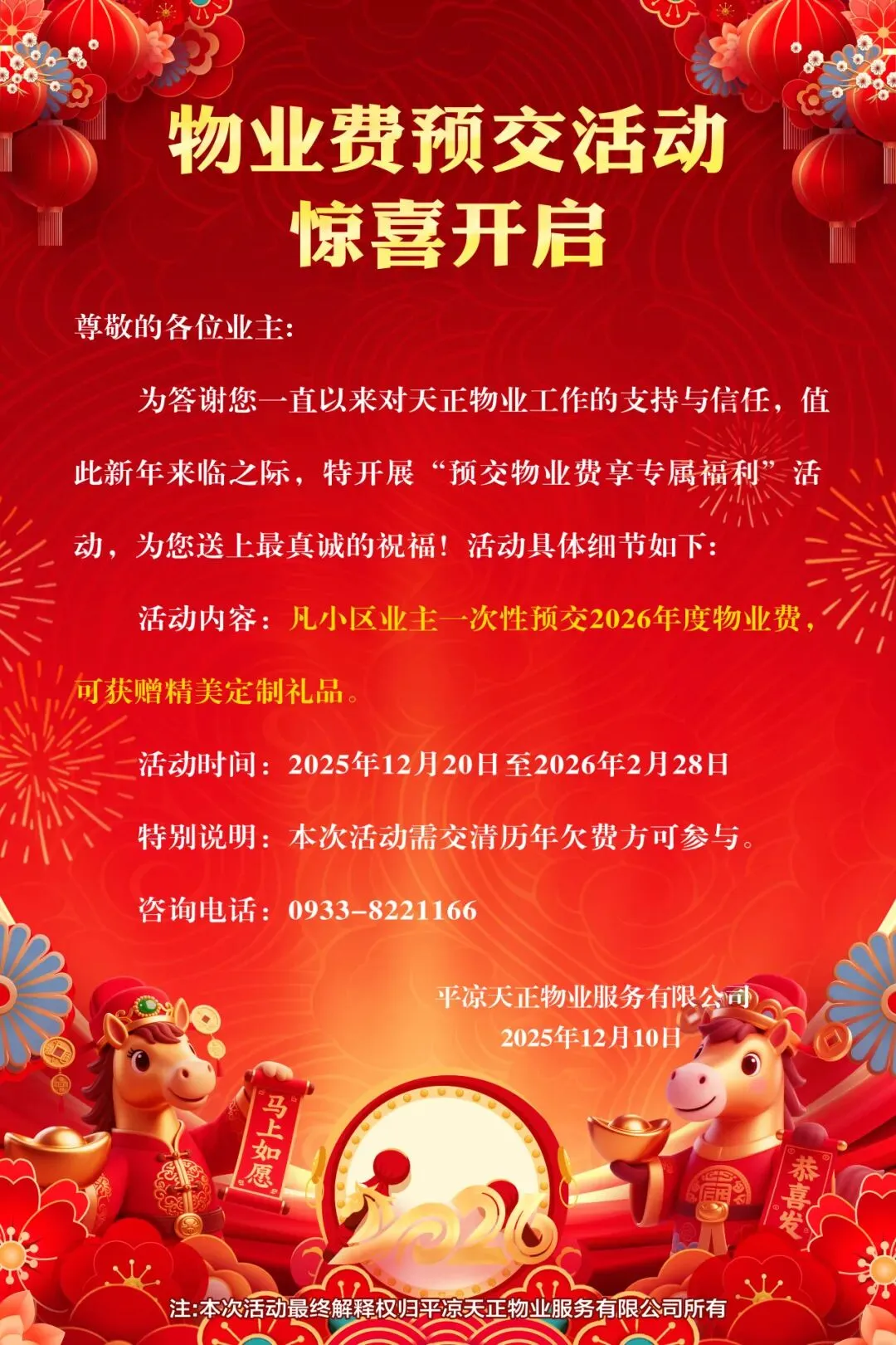 注:本次活动最终解释权归平凉天正物业服务有限公司所有