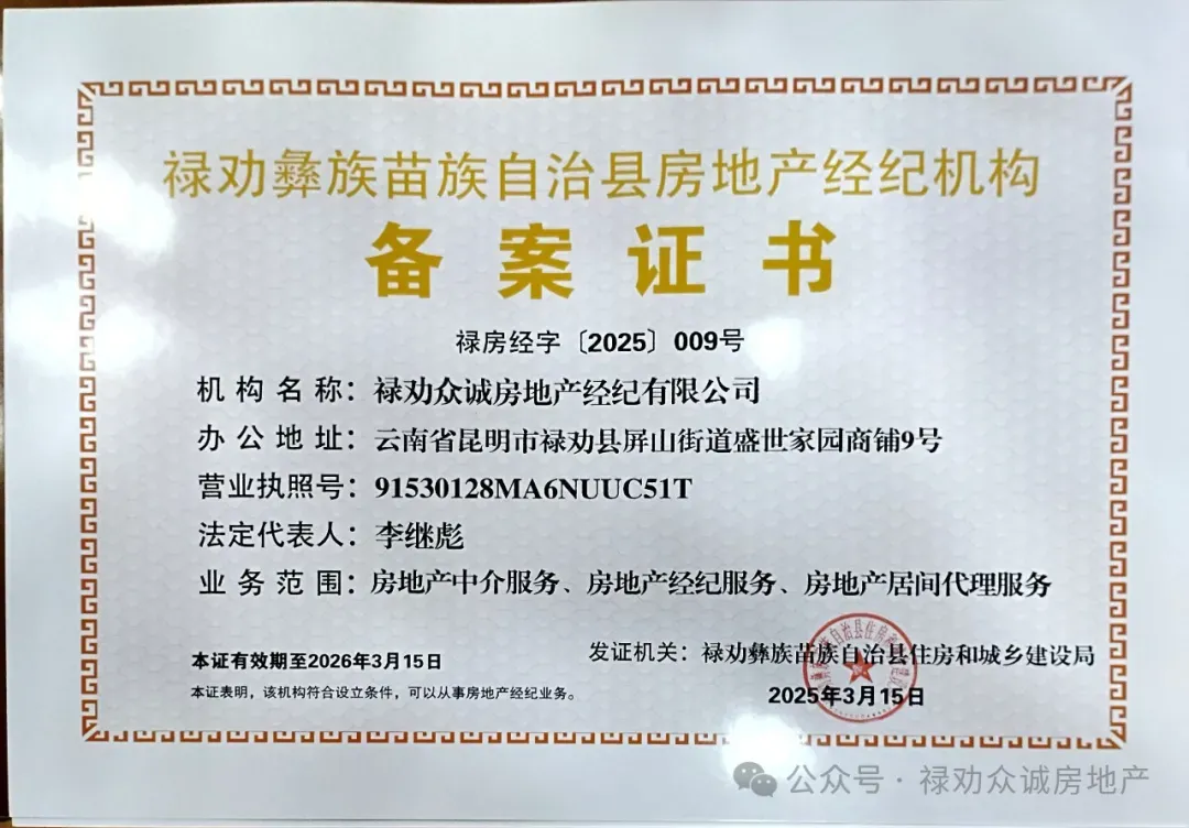 禄劝众诚房地产经纪有限公司简介
