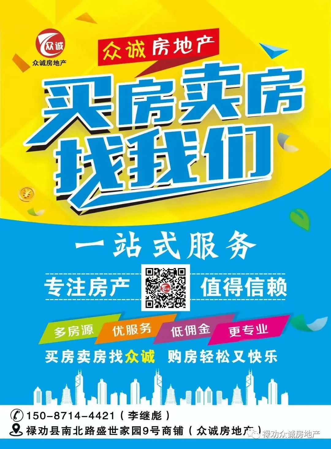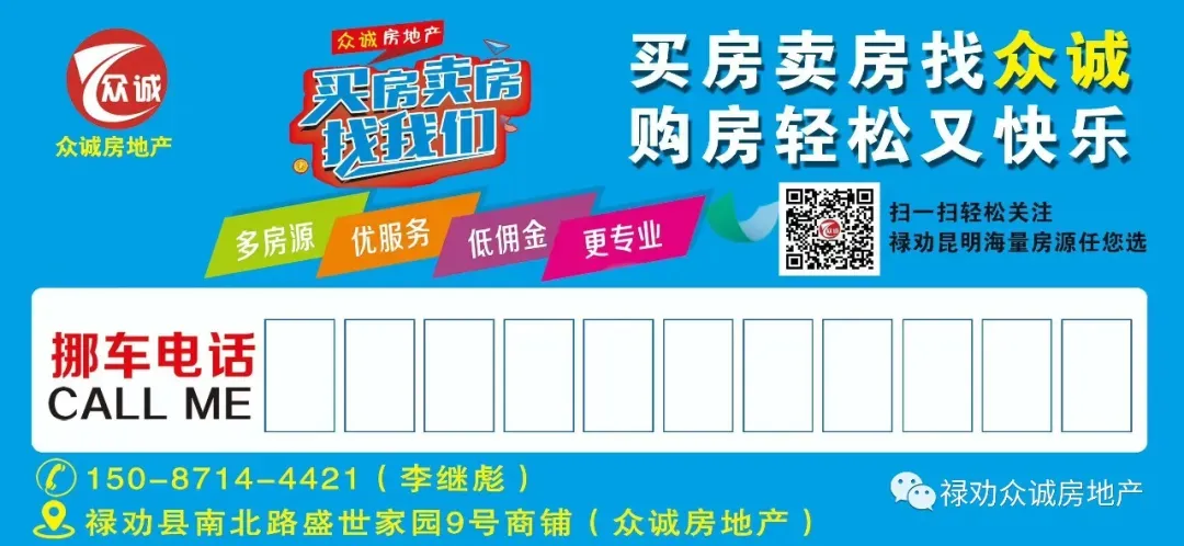 禄劝众诚房地产经纪有限公司,禄劝.昆明线上乡下全面广告大力推广,其中“众诚房地产”微信公众号线上平台,线下已经全城全乡镇覆盖DM单广告、挪车广告、喷绘广告、布标广告、众诚房地产篮球晚饭杯、众诚房地产走进斗牛场、众诚房地产宣传车下乡、众诚房地产与多家企业合作等。