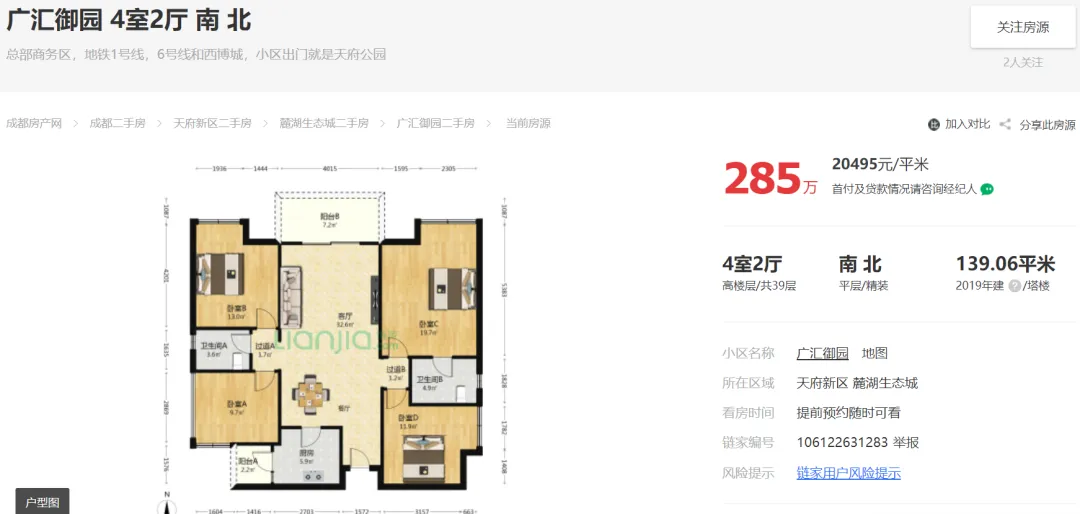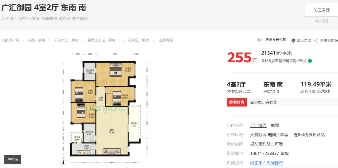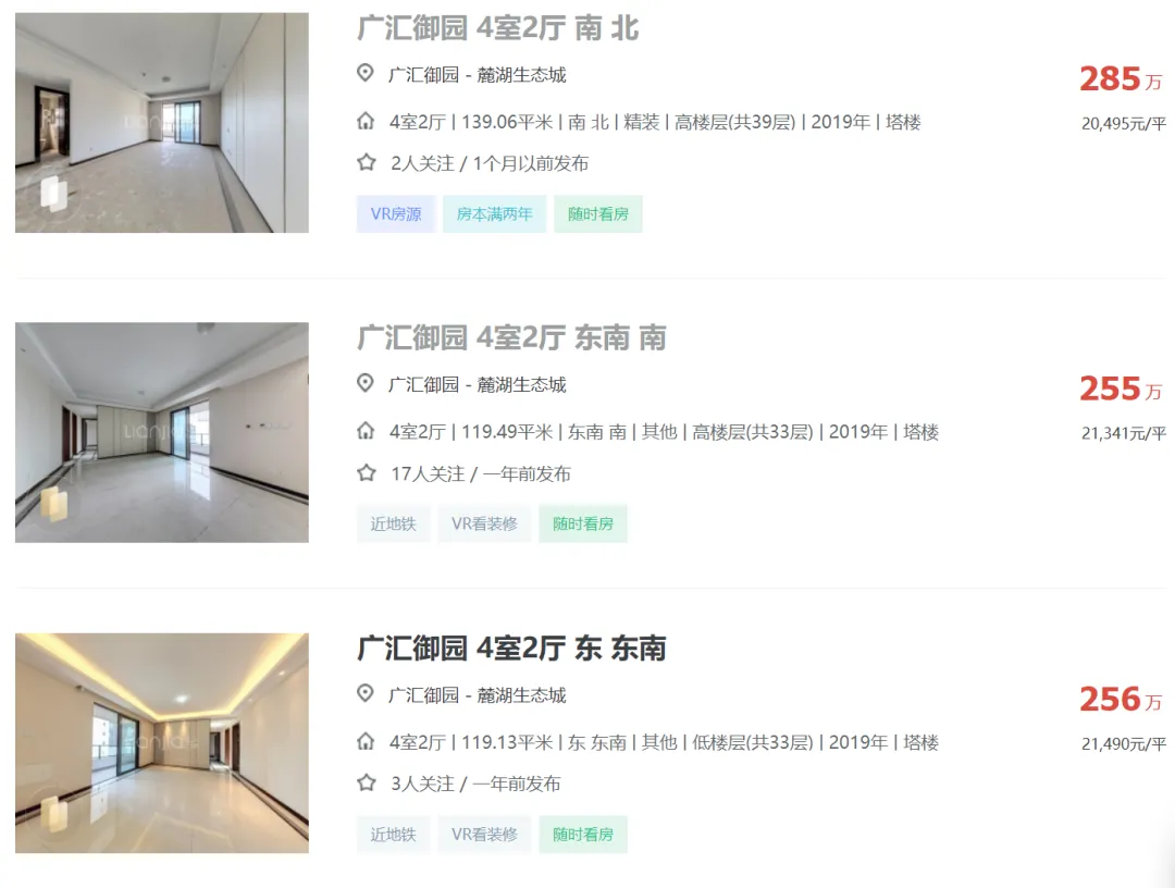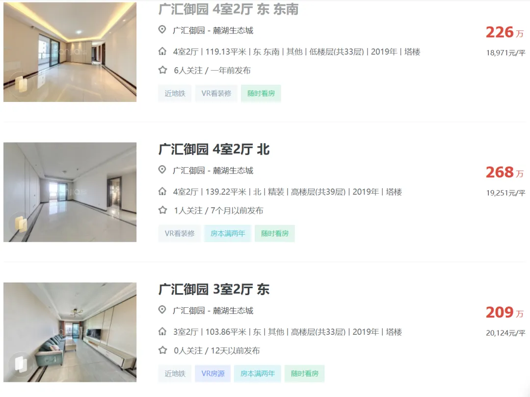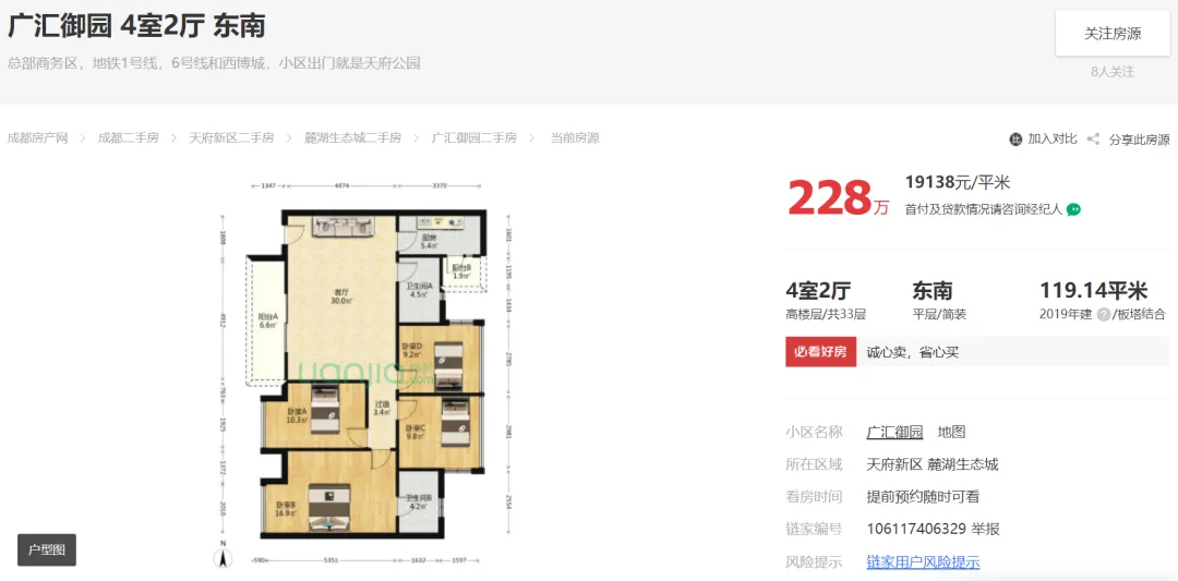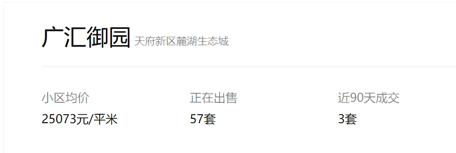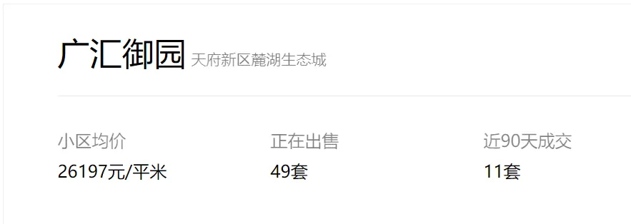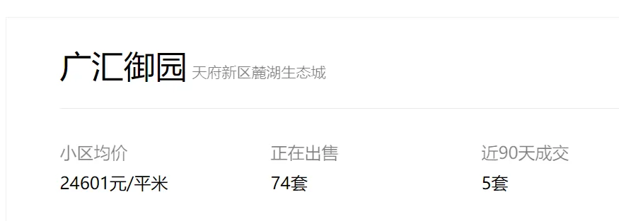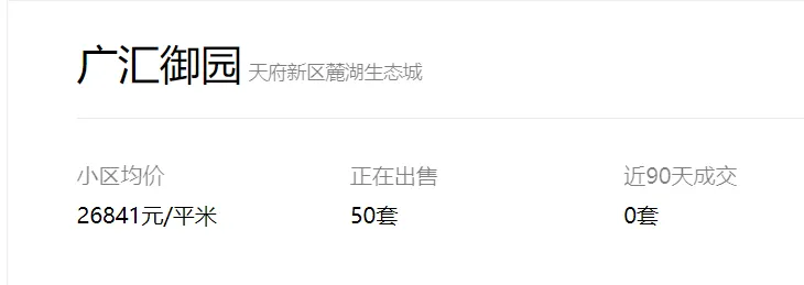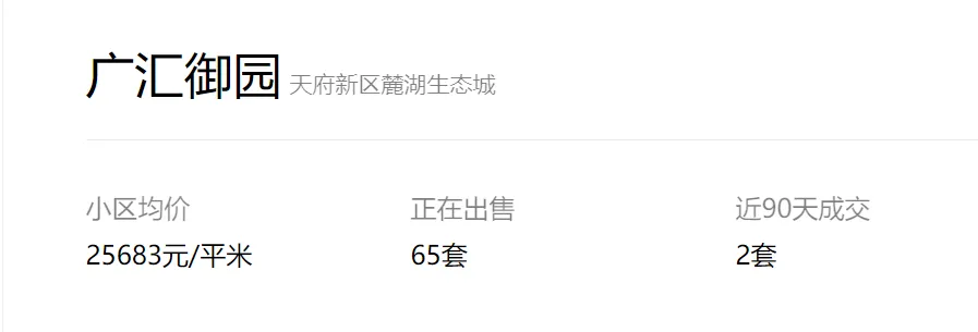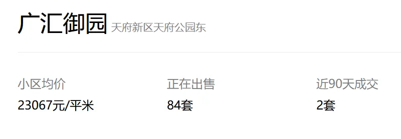 天府新区广汇御园一期二手房挂牌单价已跌破1.7万!