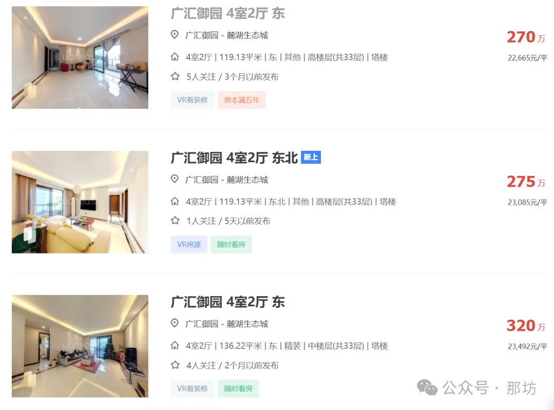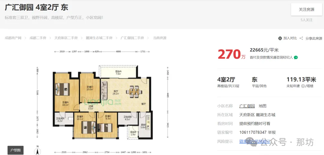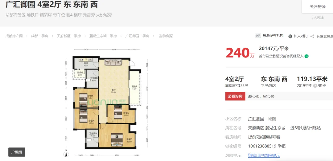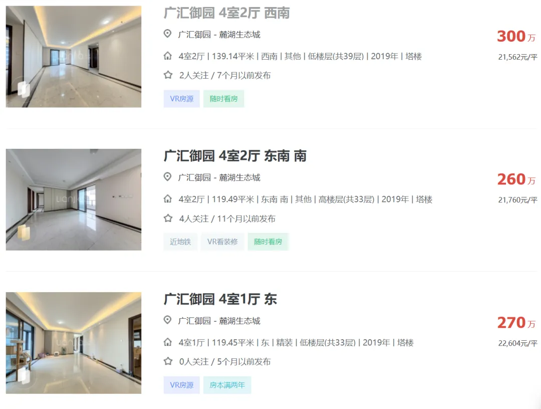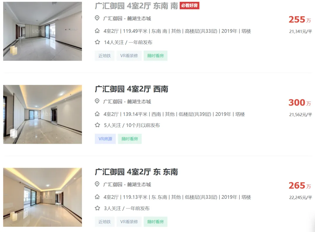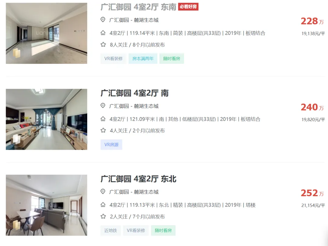天府新区广汇御园一期二手房挂牌单价已跌破1.7万!