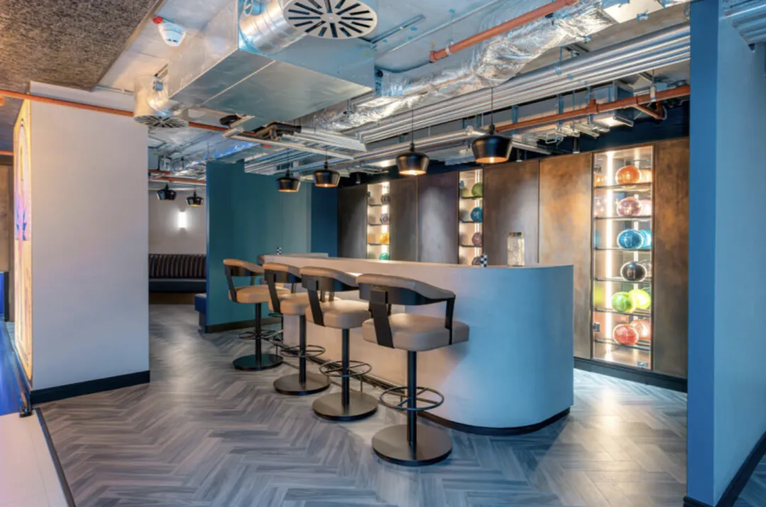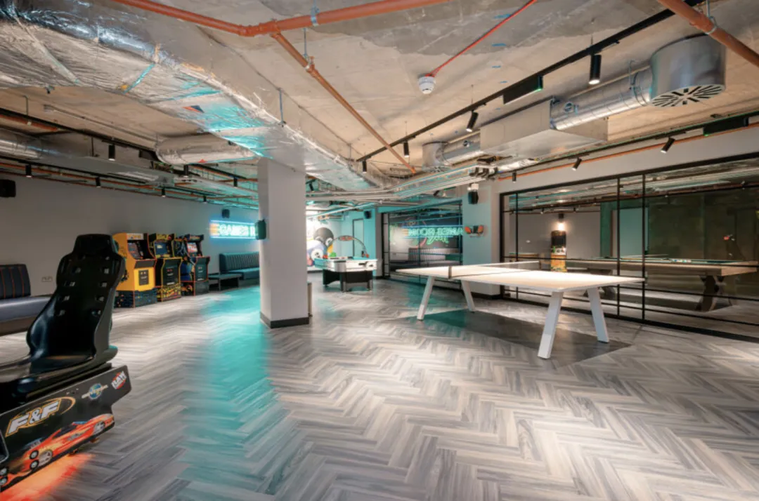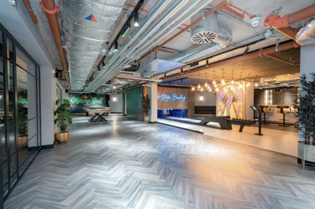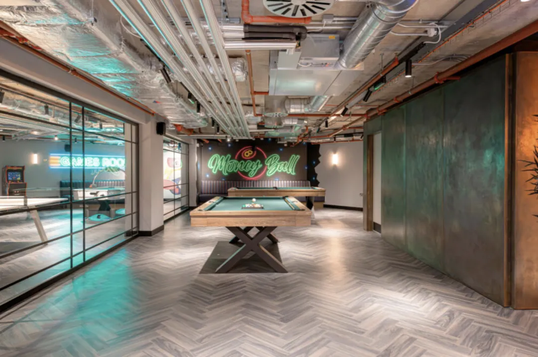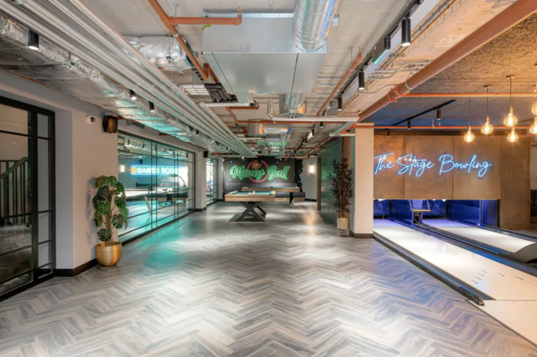 超大游戏区配两条保龄球道、台球桌和果蔬吧。
