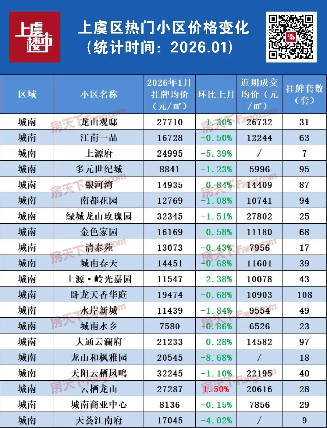 城南:本月挂牌均价17927元/㎡,近期成交均价13587元/㎡