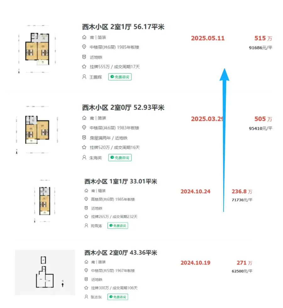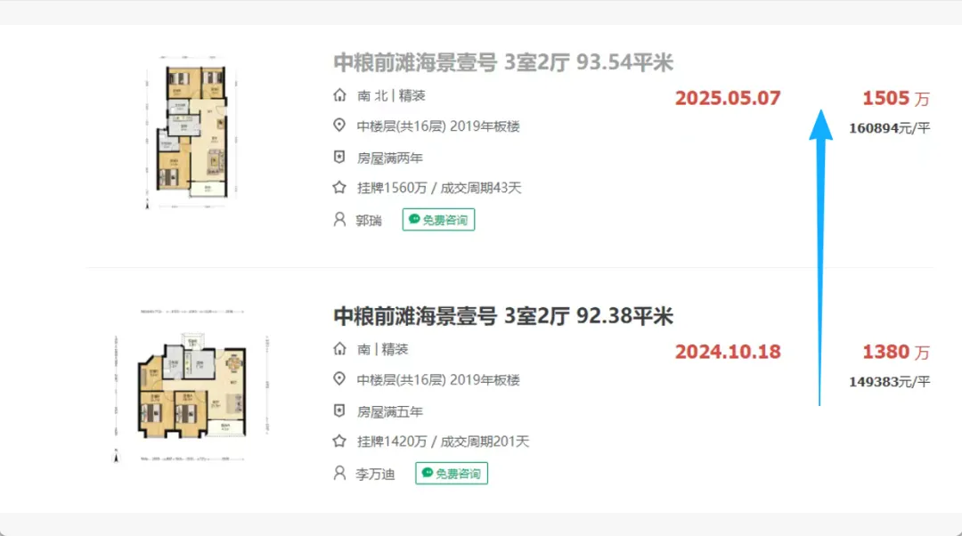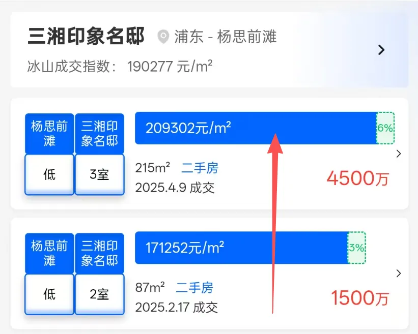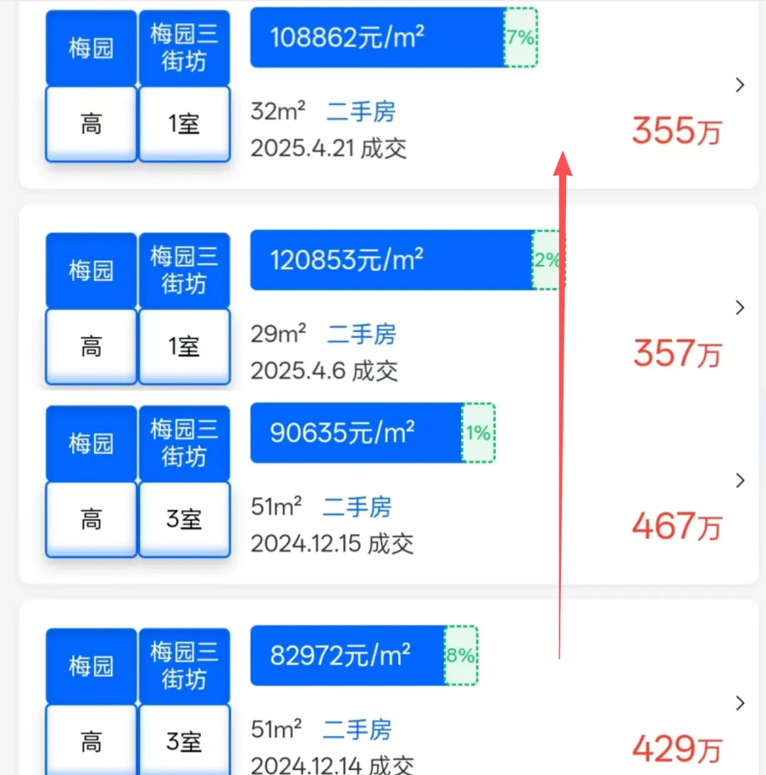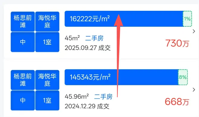 毫无疑问,过去这一年大行情都是不乐观的,反涨小区你可以理解为都是“个案”。但即便个案,背后的理由却反而更值得我们去了解,下面,就一起来看看这些“神仙小区”。这绝对是令我印象最深刻的二手次新,如果各位还有印象2024年它的价格跌到13万+,引发轩然大波。但可以看到2025年,重新回到16-17万的水平,并且还是低楼层,反涨幅度30%;这里面的原因,我觉得更多是当时房东对于市场恐慌情绪到了极点,做出了“割肉”行为。所以这也提醒大家,当市场下行的时候,不妨多观察下,当然也要充分衡量判断自己的房子标的含金量情况。2024年前滩同样风声鹤唳,但其实从2025年开始这个板块就一直在传出好消息,不仅价格稳住,成交量也一定很高光。而作为中粮大悦城豪宅系的重要组成,中粮前滩海景壹号也反涨了,从14.9万回到了16.08万,涨幅7%。我看了下,这个户型最新的挂牌价也都保持在16-17的水平,非常有“含金量”,毕竟买的时候也就9万左右的水平,依旧赢麻。至于原因我放到下一章节,前滩板块是我要重点讲的价格稳住的版图。这个项目可能很多人不认同,因为现在它又降下来了。但去年上半年6、7月份,它确实从24年的6万多反涨回7.4万,同样的户型和楼层情况。也是这个事情,让我意识到即便二手冲击很大的板块,区域标杆的含金量还是最高的,更值得大家选择。这可能是整个2025年反涨最有含金量、最无可反驳的房源。2024年,小区价格普遍在7万,2025年全部突破10万+;涨幅30%以上;原因大家也很清楚,就是带“拆迁”概念,除了它,周边的西木小区、江南新村都是这种情况;其中,确定性最高的江南新村涨幅最猛,直接从8万+飙到了13万+,24年买到的业主赢麻,不仅这波涨幅收入囊中,拆迁还有一笔;毫无疑问,这个就是学区的典型代表,海防村24年一度到12-15万为主,但25年普遍涨回了16-18万;这说明学区老破小也经历了一波风暴,但它的价值其实也相对稳健,至少短期硬核学区的房源依旧有着绝对稀缺性。浦东的梅园三街坊也一样,24年普遍跌到8、9万水平,25年一度回到了10-12万。所以,满是不利消息的2025二手市场,其实依旧有光。在普遍下行的市场中,极致的稀缺性(无论是产品、地段、资源还是预期),是穿越周期唯一的硬通货。这也给到了我们一些思考,无论买房还是卖房,你一定要仔细评判下自己手中的标的,它究竟含金量如何,切勿做出错误决策。谁很稳?