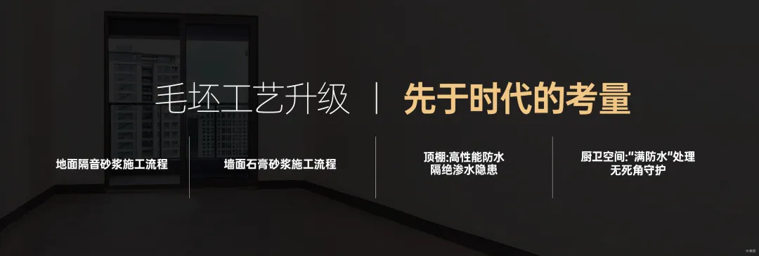 在具体实践中,建总地产洞察行业痛点,率先提出“毛坯工艺再升级”,通过引入静音砂浆、石膏抹灰、满防水处理等创新工艺,赋予毛坯更高品质。
