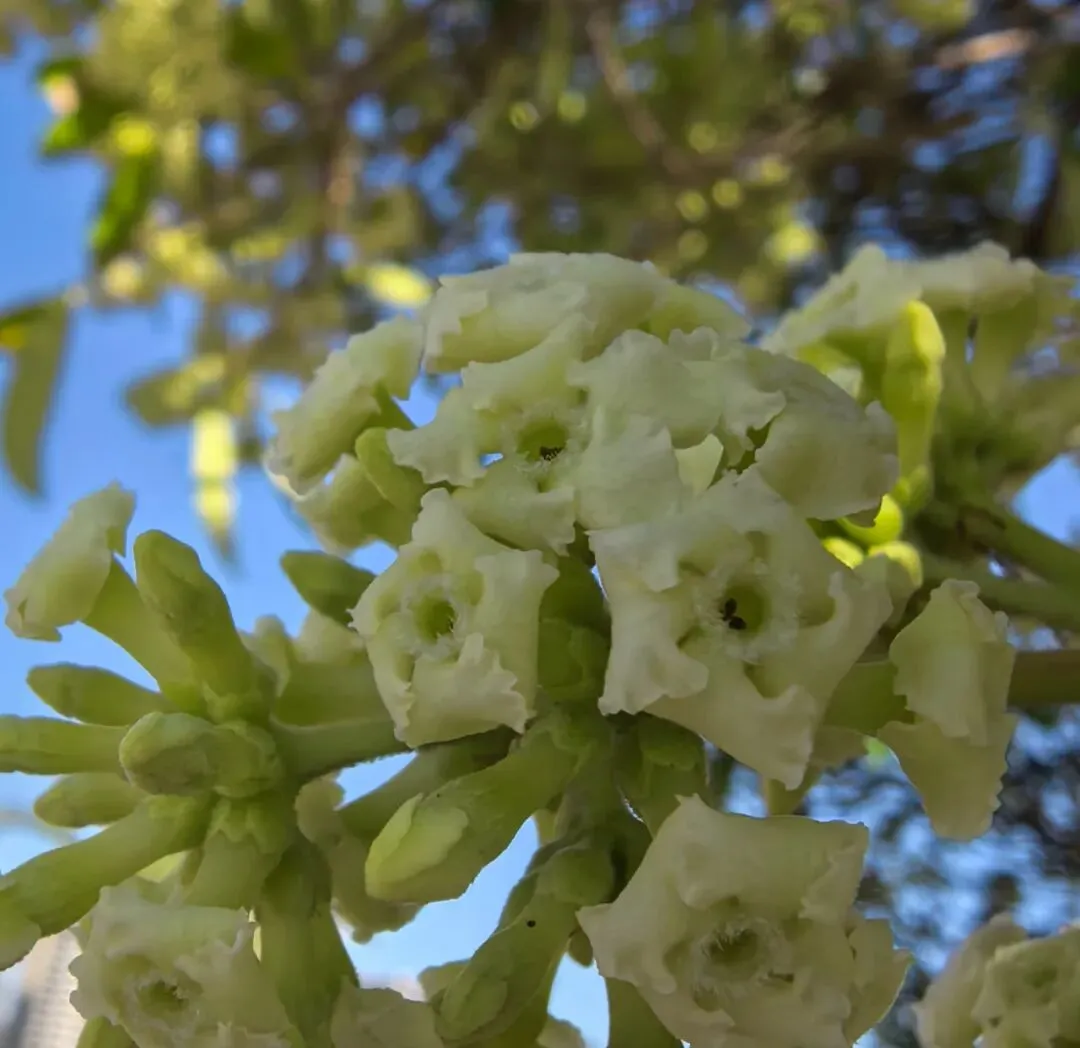 【基原】夹竹桃科植物楝糖胶树Alstoniascholaris (L.) R. Br.【植物形态】乔木,高达20米,直径约60厘米(在国外有记载高可达40米,直径1.25米);枝轮生,具乳汁,无毛。叶3-8片轮生,倒卵状长圆形、倒披针形或匙形,稀椭圆形或长圆形,长7-28厘米,宽2-11厘米,无毛,顶端圆形,钝或微凹,稀急尖或渐尖,基部楔形;侧脉每边25-50条,密生而平行,近水平横出至叶缘联结;叶柄长1.0-2.5厘米。花白色,多朵组成稠密的聚伞花序,顶生,被柔毛;总花梗长4-7厘米;花梗长约1毫米;花冠高脚碟状,花冠筒长6-10毫米,中部以上膨大,内面被柔毛,裂片在花蕾时或裂片基部向左覆盖,长圆形或卵状长圆形,长2-4毫米,宽2-3毫米;雄蕊长圆形,长约1毫米,着生在花冠筒膨大处,内藏;子房由2枚离生心皮组成,密被柔毛,花柱丝状,长4.5毫米,柱头棍棒状,顶端2深裂;花盘环状。蓇葖2,细长,线形,长20-57厘米,外果皮近革质,灰白色,直径2-5毫米;种子长圆形,红棕色,两端被红棕色长缘毛,缘毛长1.5-2厘米。花期6-11月,果期10月-翌年4月。常见栽培。【别名】中药名象皮木、又名面条树、大枯树、买担别、大树矮陀陀、大矮陀陀、大树理肺散、理肺散、灯台树、鸭脚木、阿根木、吃力秀、肥猪叶、面架木、金瓜南木皮、英台木、九度叶、鹰爪木、灯架树、黑板树、盆架子、面盆架、盆架树【功能主治】清热解毒;祛痰止咳;止血消肿。主感冒发热;肺热咳喘;百日咳;黄疸型肝炎;胃痛吐泻;疟疾;疮疡痈肿;跌打肿痛;外伤出血(《中华本草》)