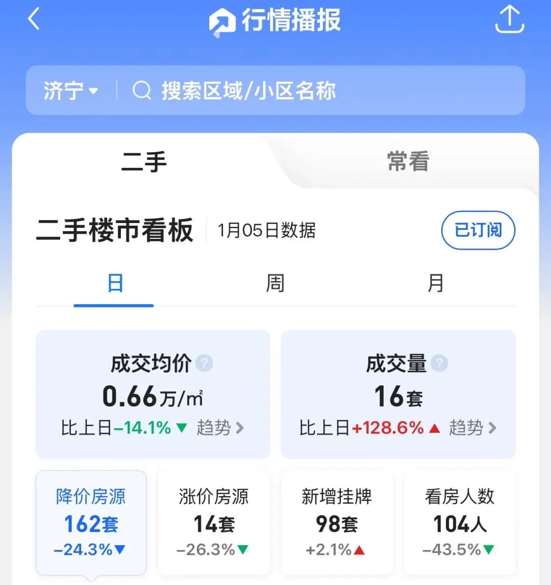 >济宁二手房每日成交数据|1月5日