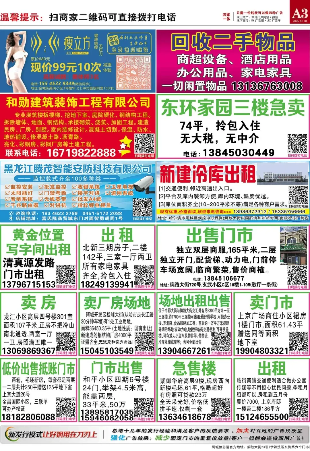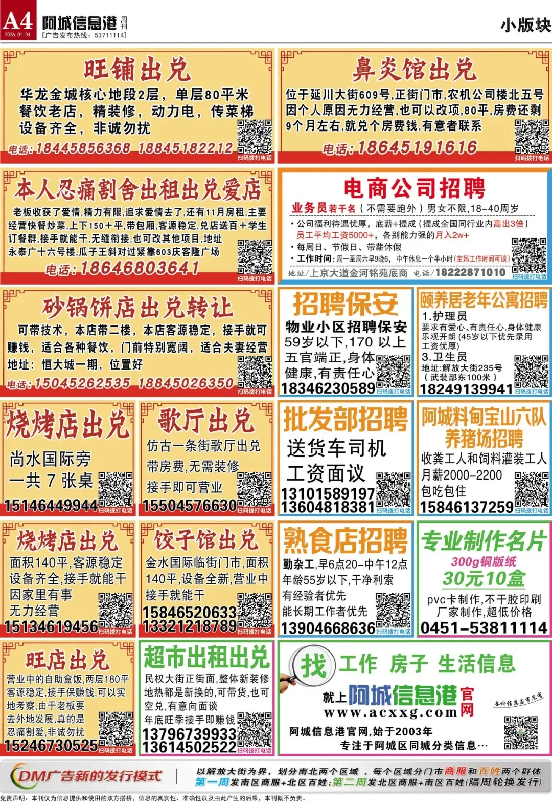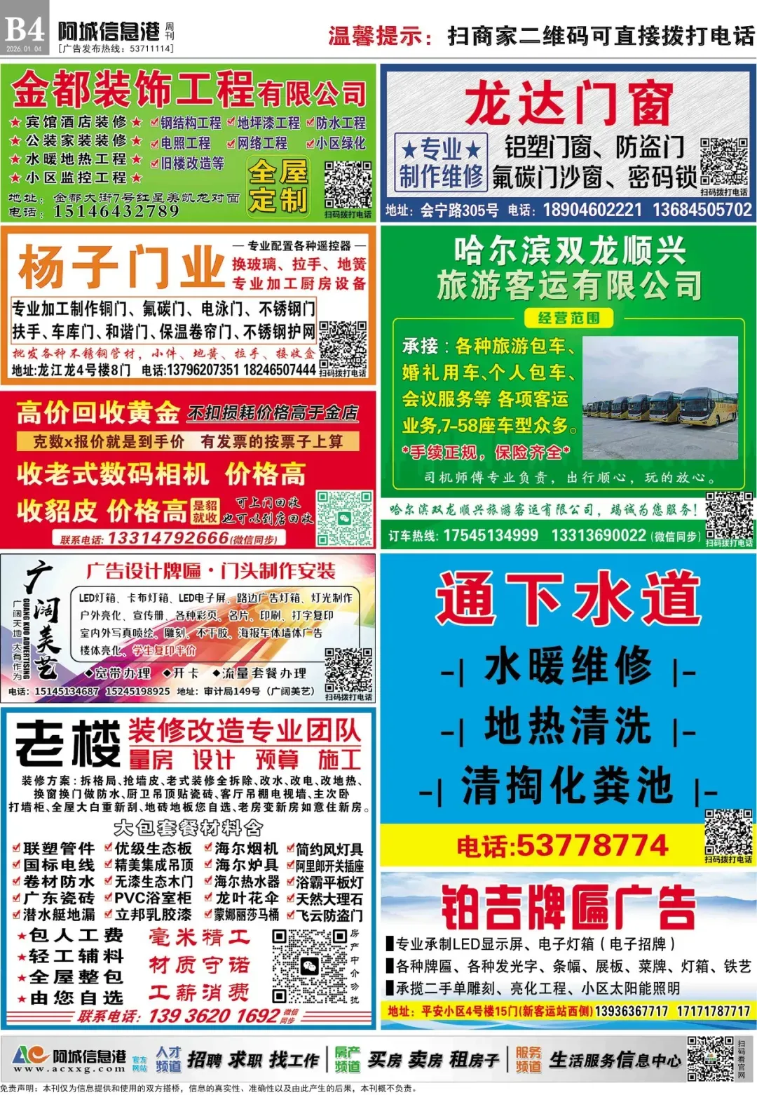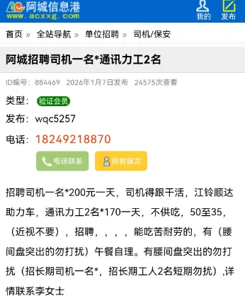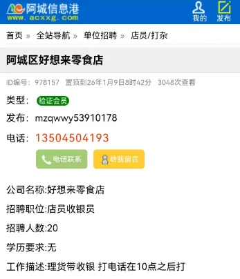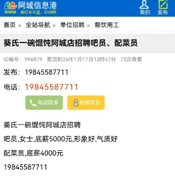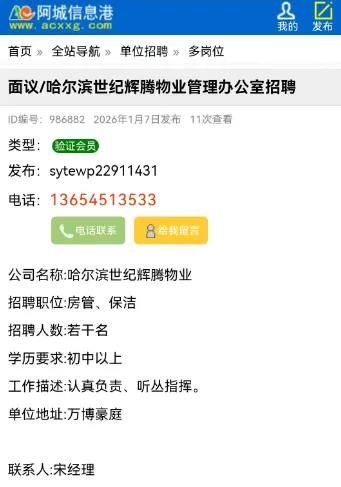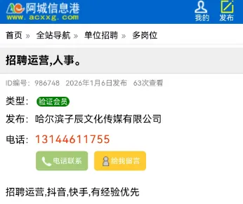本次分类信息均来自阿城信息港官网,凡“收取服装费、押金、报名费等各种费用”或加qq/微信联系、无需任何条件、工作地点不限的均有欺诈嫌疑,请保持警惕。